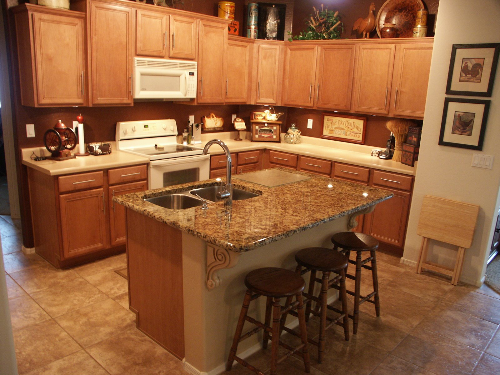 Thanks to Chari @ Happy To Design for hosting this special Sunday event. This is our chance to see an older post that we may have missed or one that we would like to see again. Be sure to visit her blog to see everyone that is participating. There have been some incredible posts and you really don’t want to miss any of them.Today I am showing the repost of my Mini Kitchen Redo. This was one of the first posts I did. If you have seen this, please forgive, if not I think this shows that even a very mini kitchen redo can make a huge difference.When we moved in we had the basic builder bland kitchen. White walls, white appliances, white sink, beige formica counters and blonde maple cabinets. The first thing I did was paint the walls a deep chocolate brown. At least you could see the cabinets now.