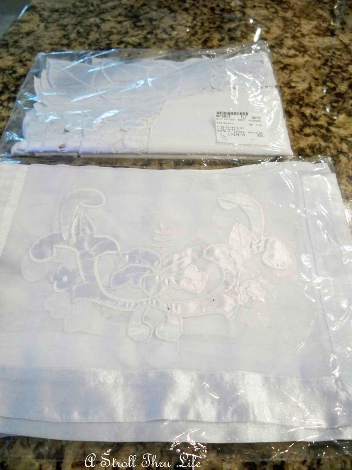 Then I saw a yard sale sign at a nearby area that is very upscale. All of the homes are at least a Million Dollars. I thought maybe they might have some great finds and I sure was right. Most things I couldn’t afford or use, however I did find a couple of things. Horchow placemats new in the bag.