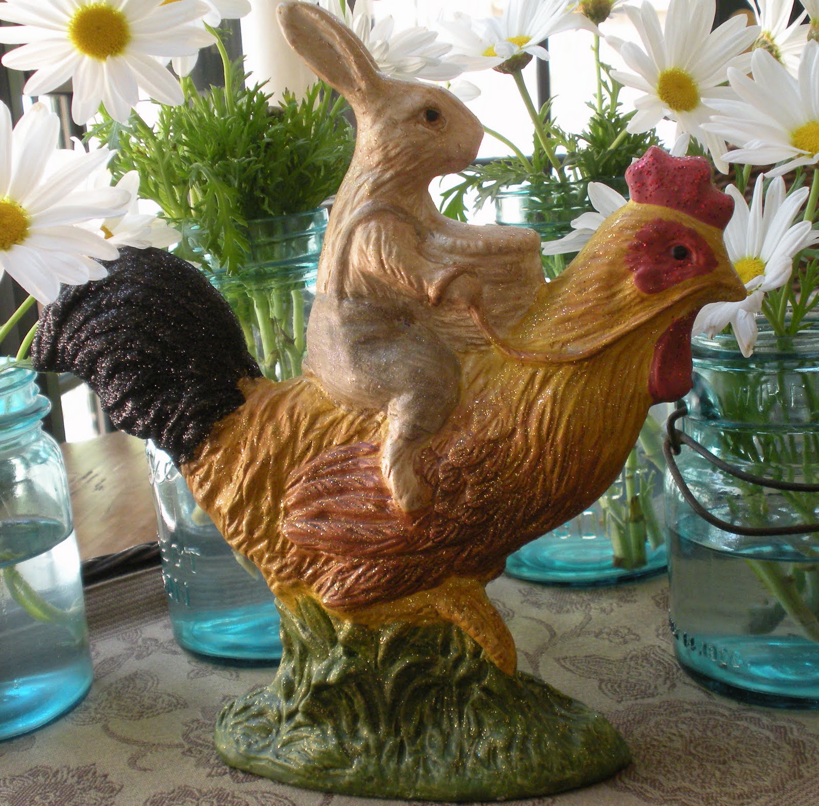 Don’t you just absolutely love this little bunny riding the roo.  She has the most fabulous collection of unusual bunnies and such gorgeous vignettes.  Be sure to check out Hyacinths For The Soul.