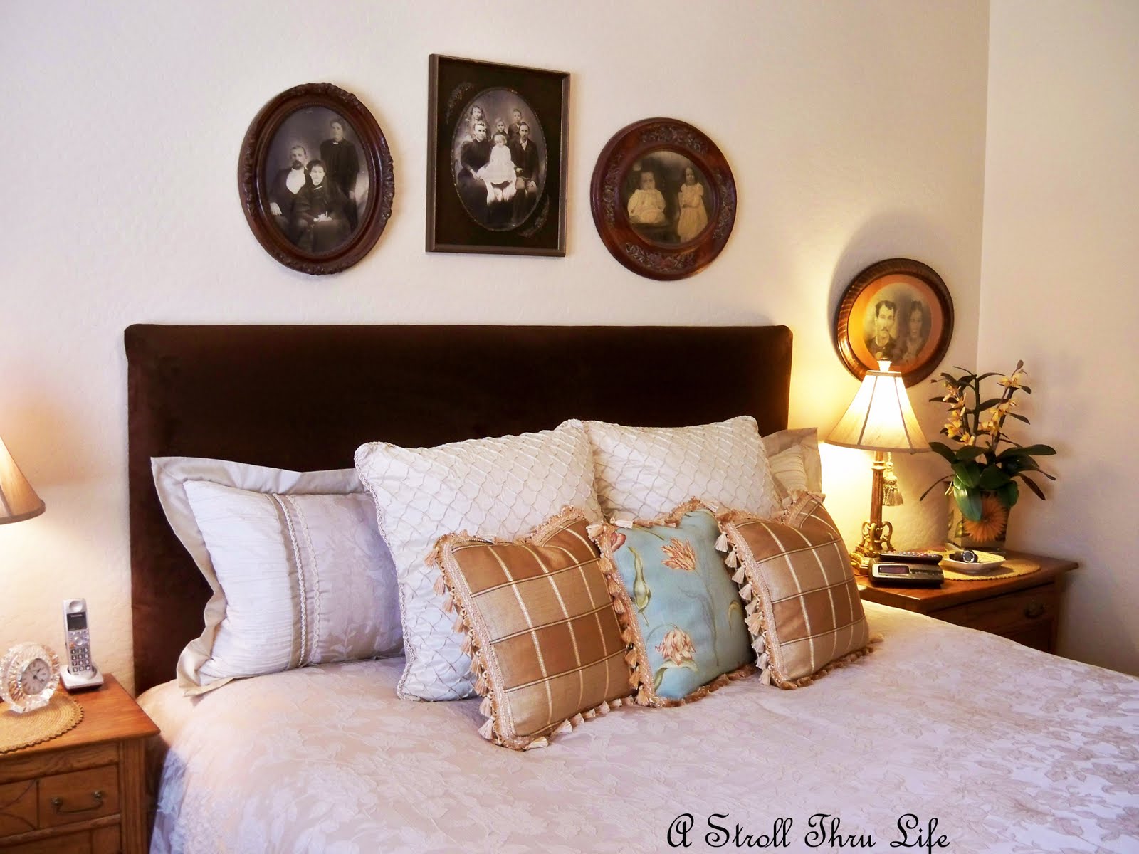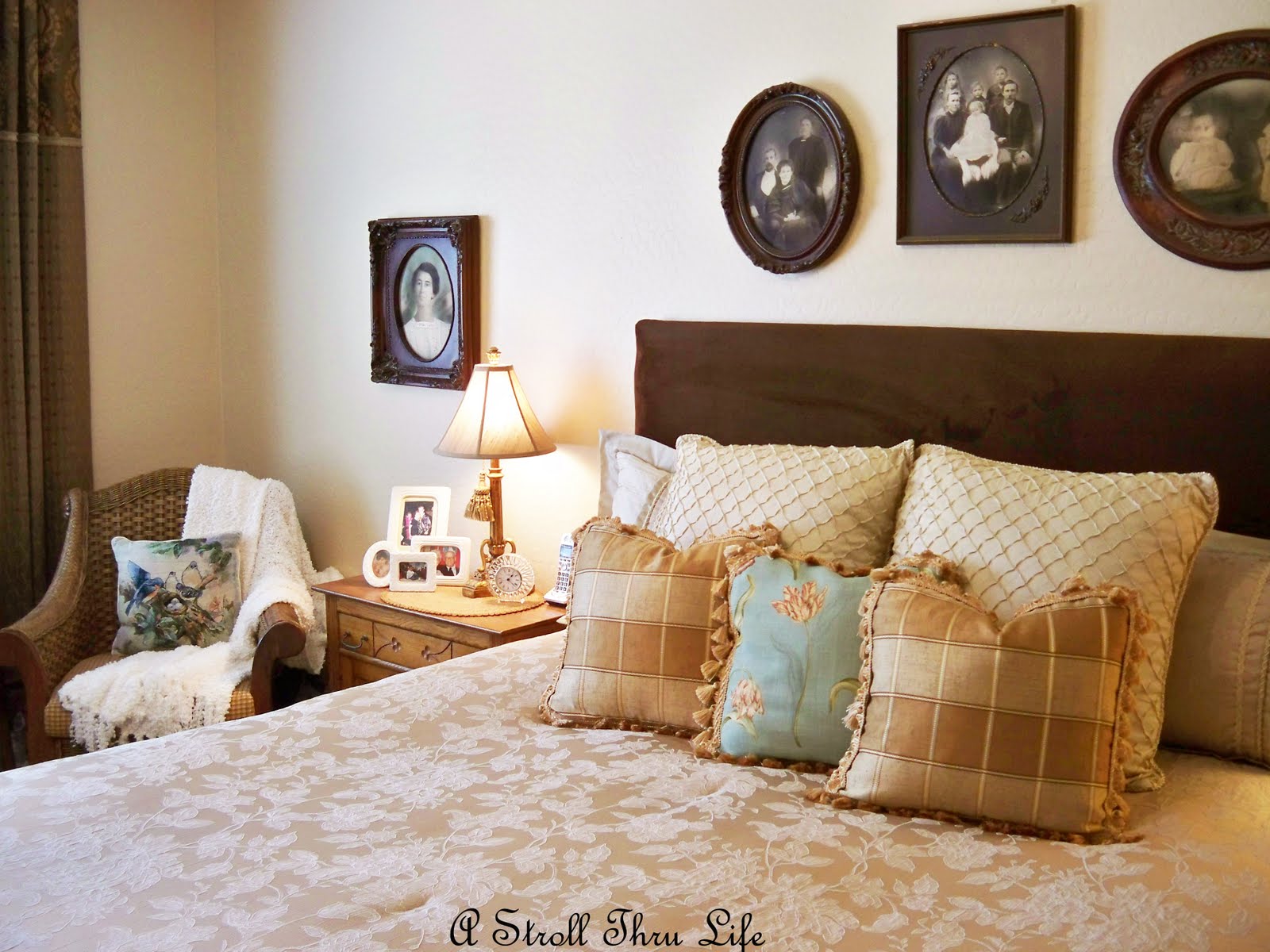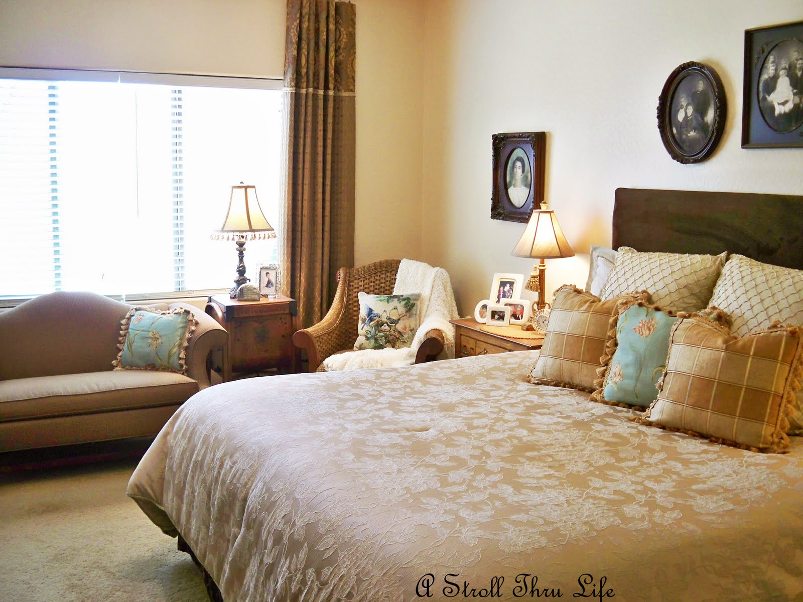 Across from the bed is the armoire that holds the TV and has drawers for more storage. You can also see my jewelry armoire and the opening to the masterbath.