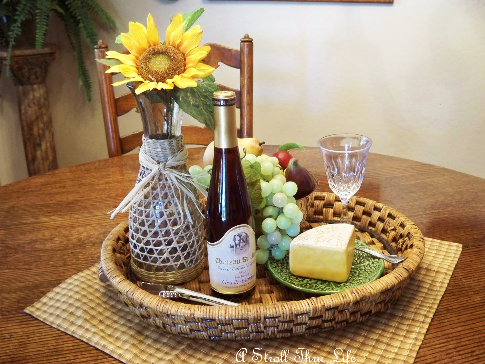 The fruit and cheese are faux, but the wine is real and so I am going to have some. Good idea don’t you think.