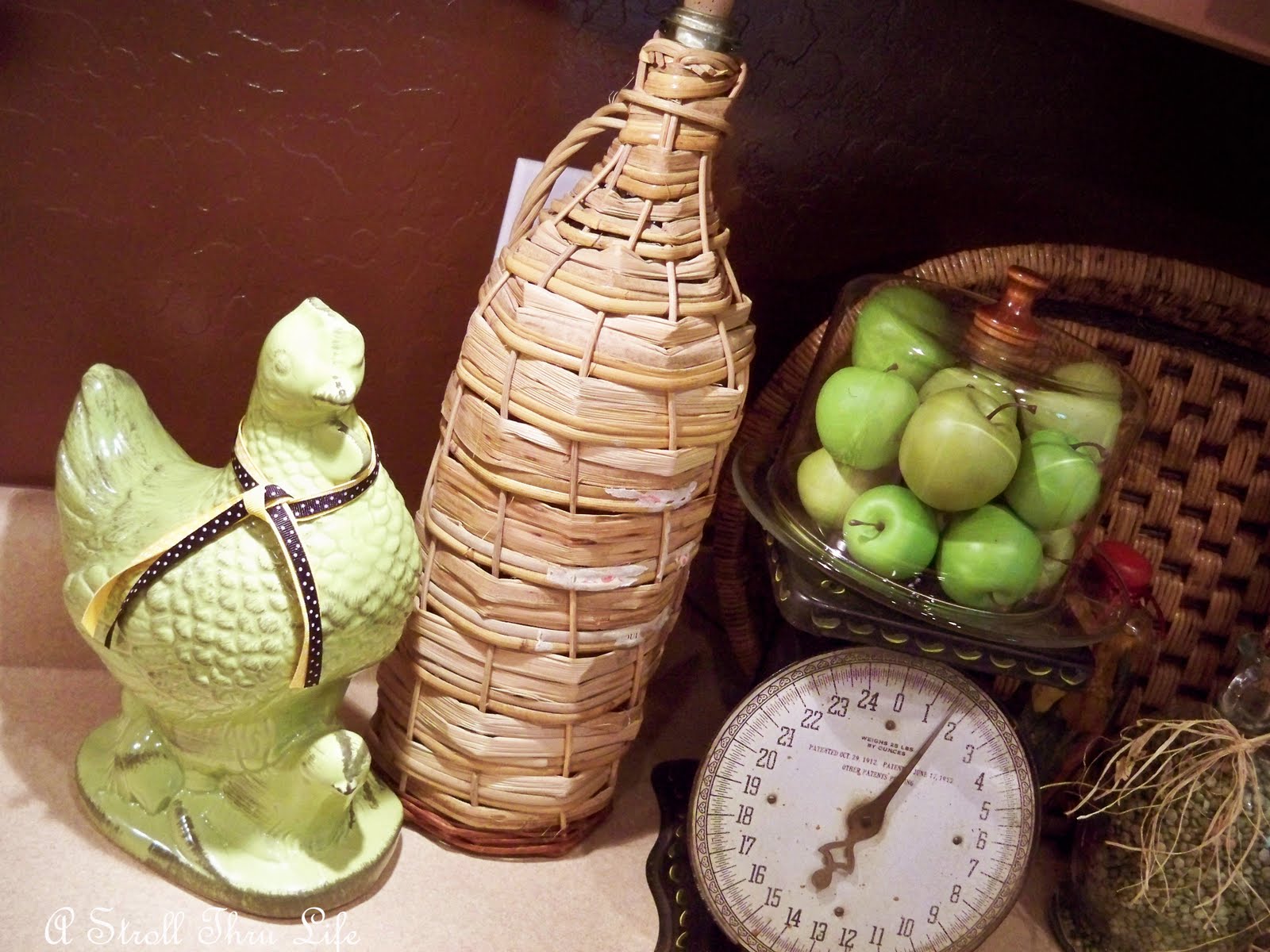 A cheese dome filled with apples is the perfect thing to top my old scales.