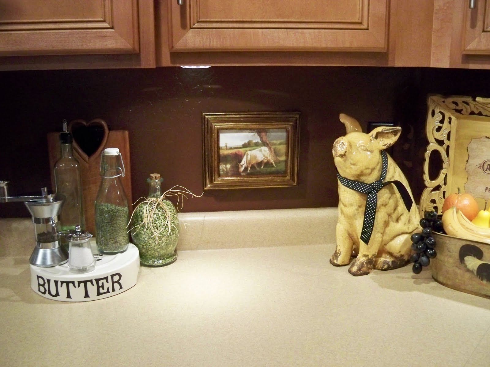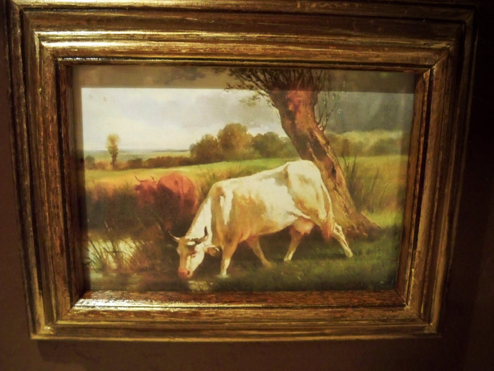 This lady had a lot of paintings, some really big, but most weren’t subjects that I liked. Of course cows are always a favorite of mine, so I picked this one up also for $3. I think it works great in the kitchen for a change.