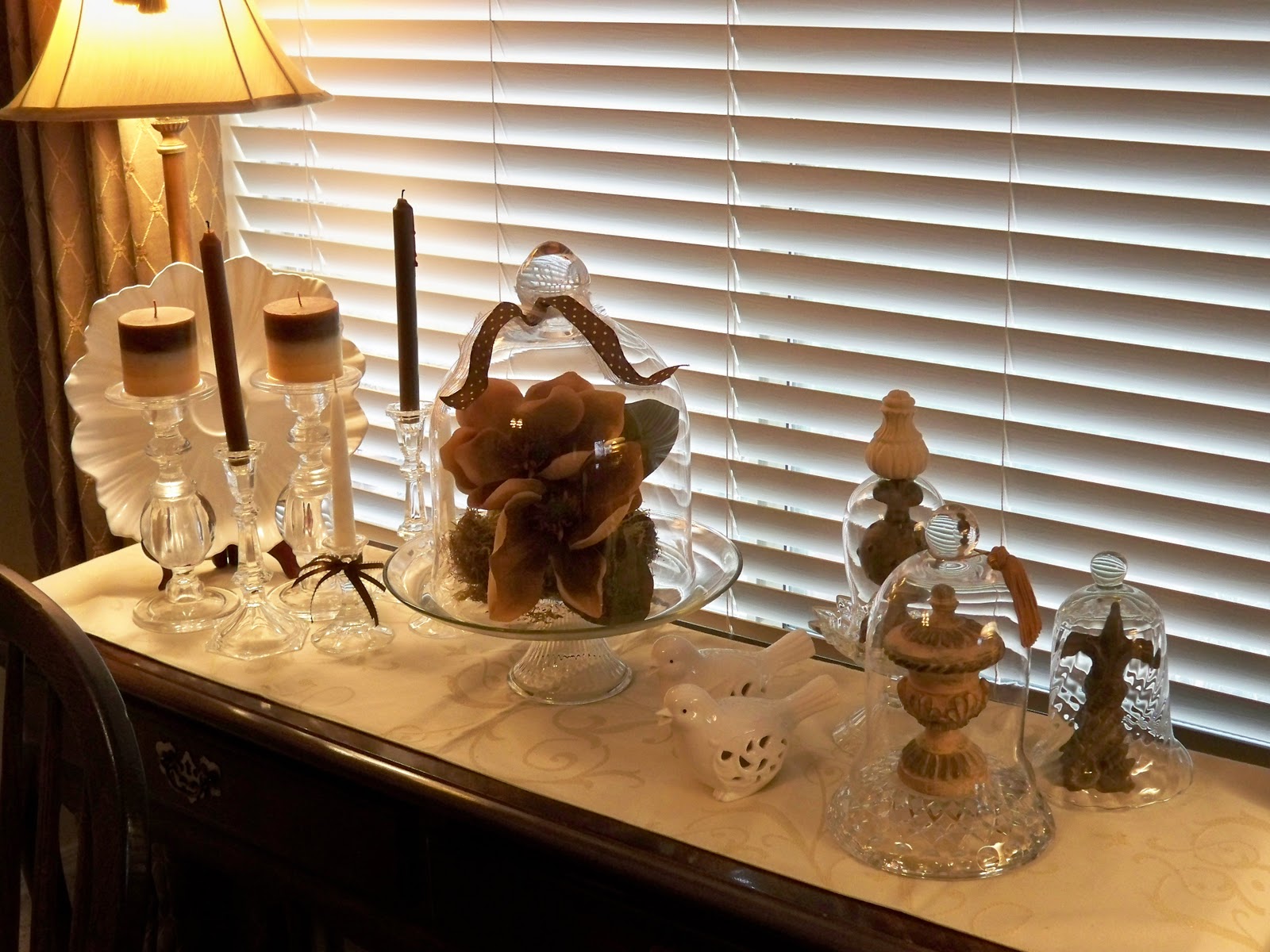 This is the dining table vignette I showed you last week. Now I want to add a cloche to it.