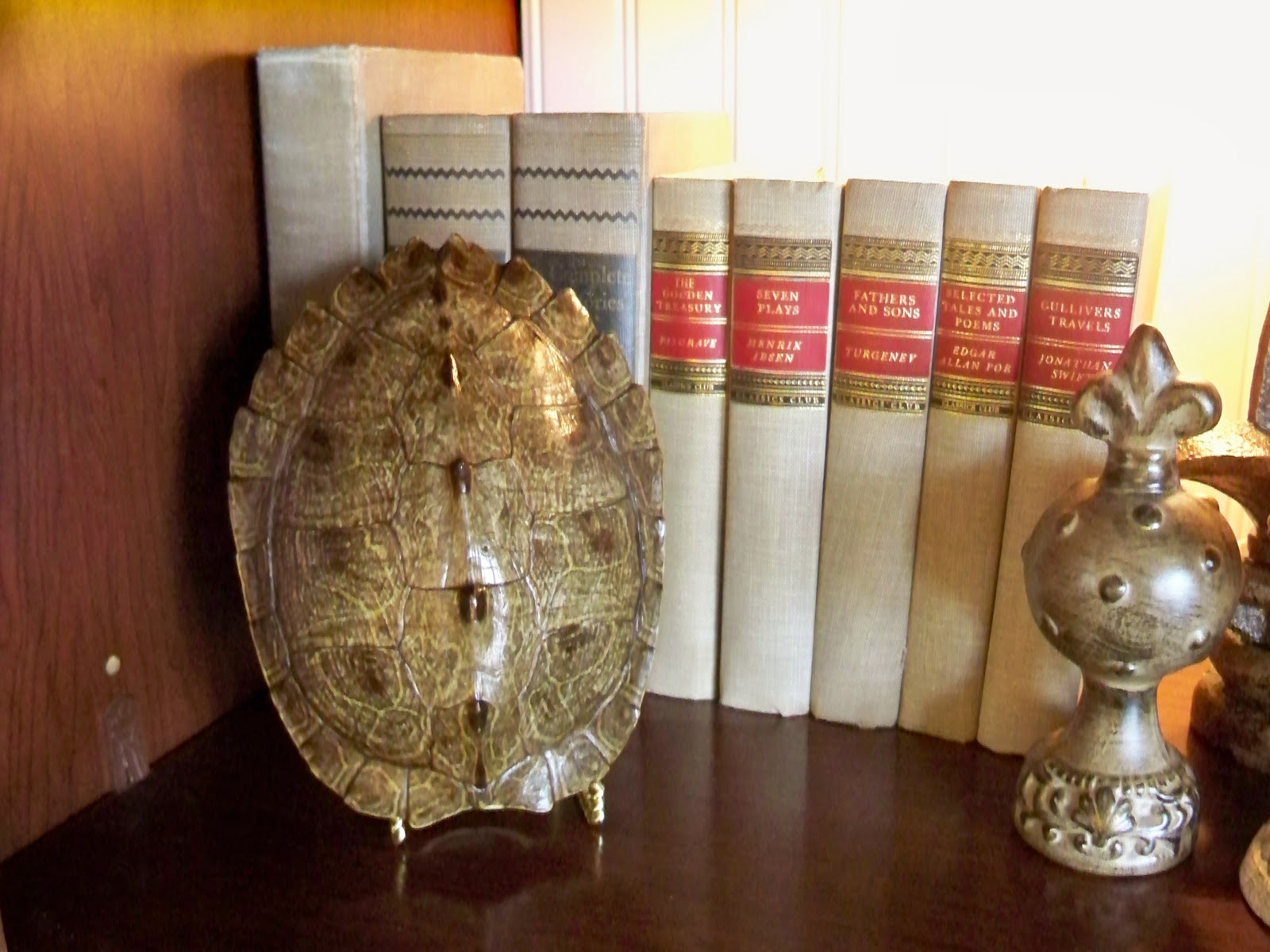 I found this turtle shell at a garage sale and she had it displayed on a teacup hook, sitting on a chest.  I love the wonderful detail of the design on the shell and the colors are stunning.