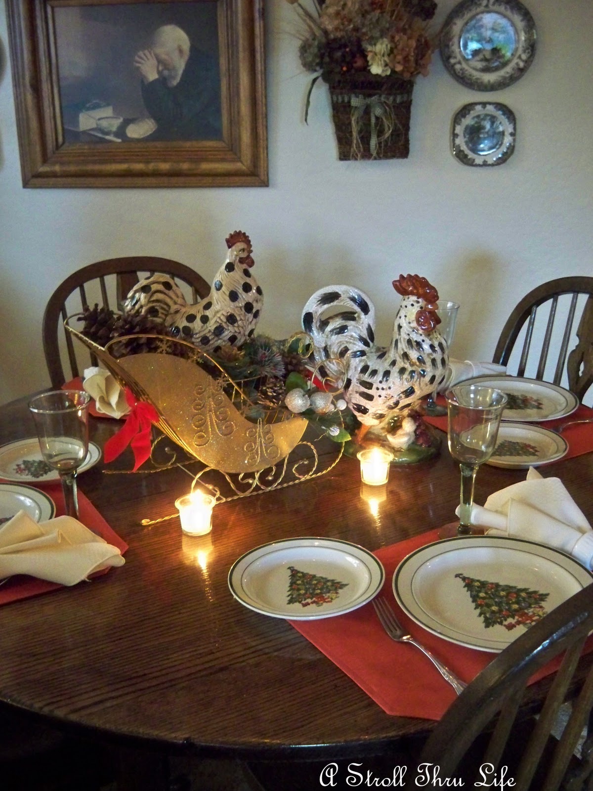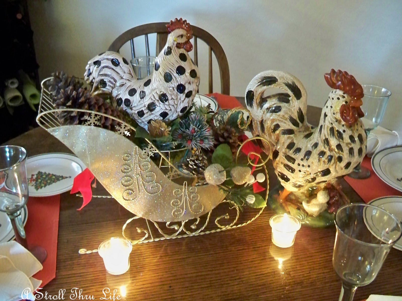I thought my little rooster centerpiece was perfect for the informal dishes and occassion.