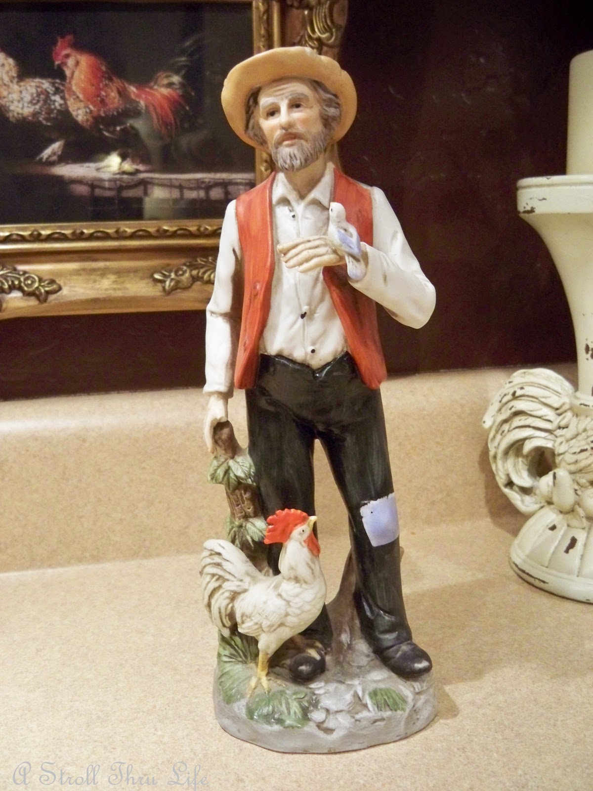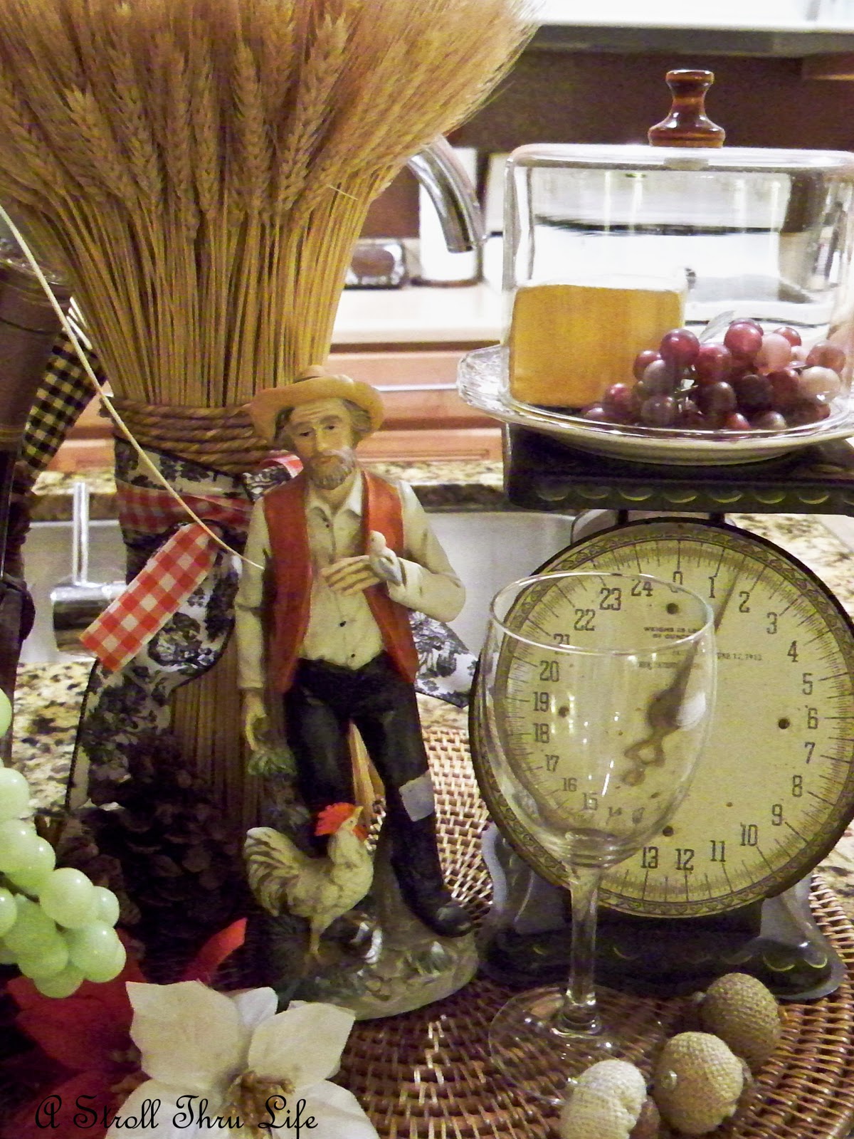 Sometimes you find something and immediately know that it just fits your decor to a tee. I found this really cute little guy that reminds me of a French Farmer a couple of weeks ago and thought he was perfect to go in my kitchen island display.