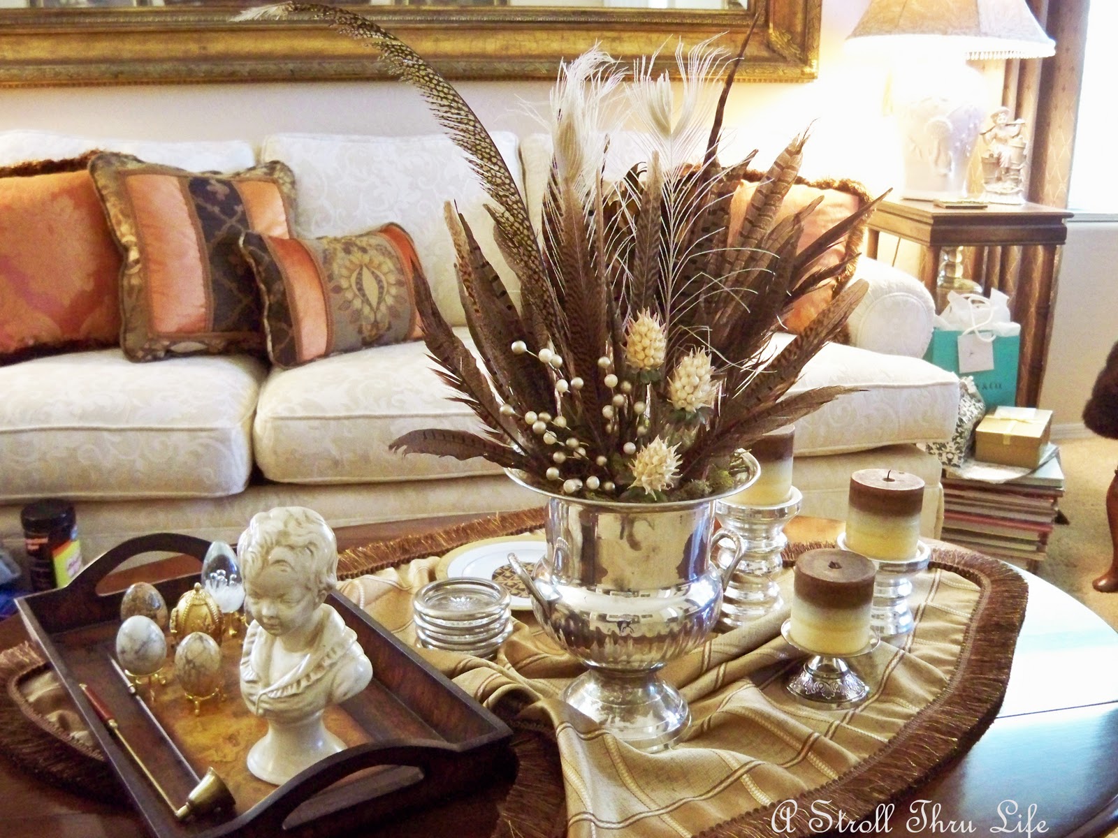 Since I am on a feather kick, I thought I would make an arrangement in mine for the coffee table.