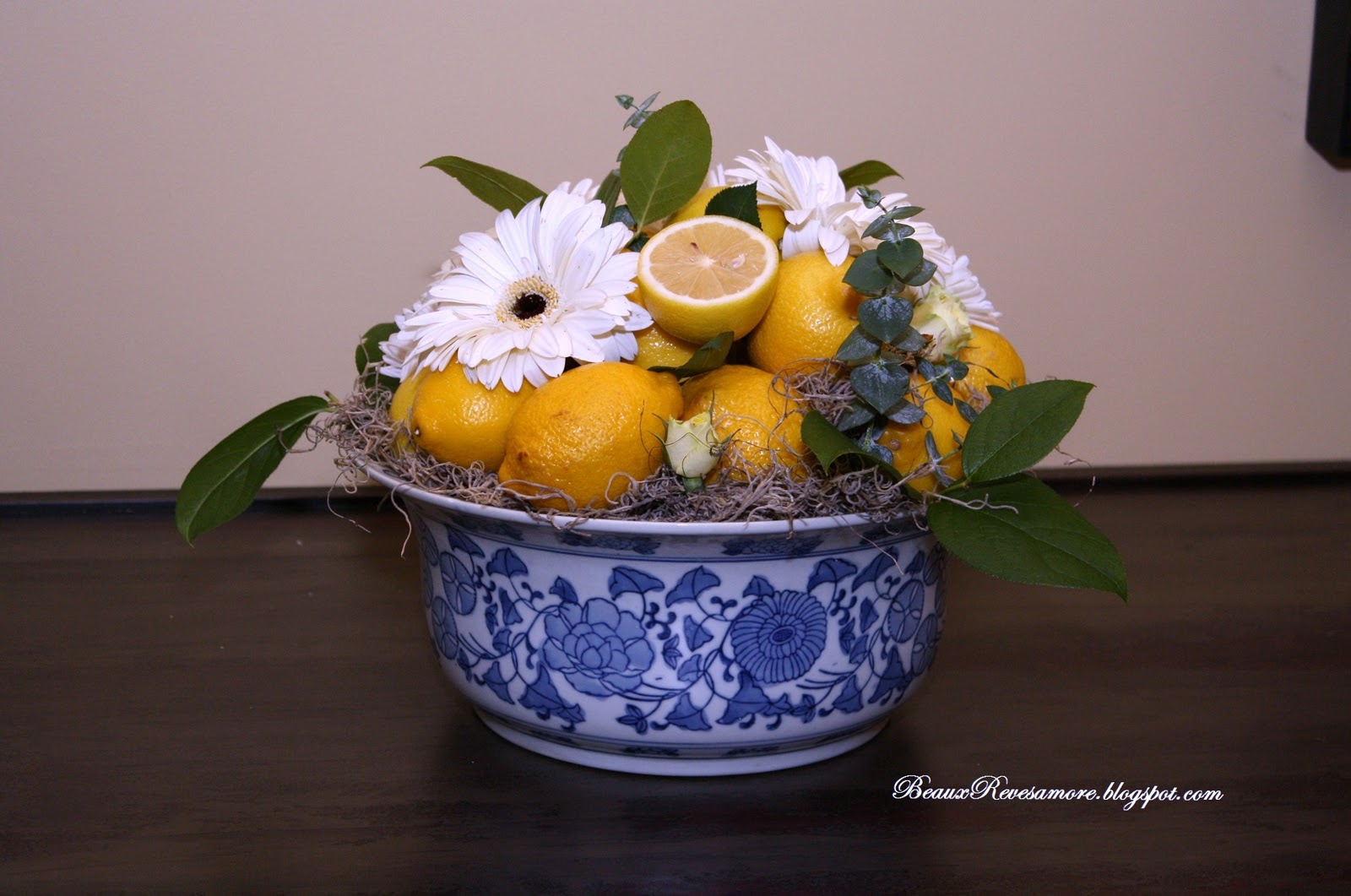 Beaux R’eves does the most wonderful tutorial on how to make this gorgeous floral and fruit arrangement. Great way to show what to do when “Life Gives You Lemons”.