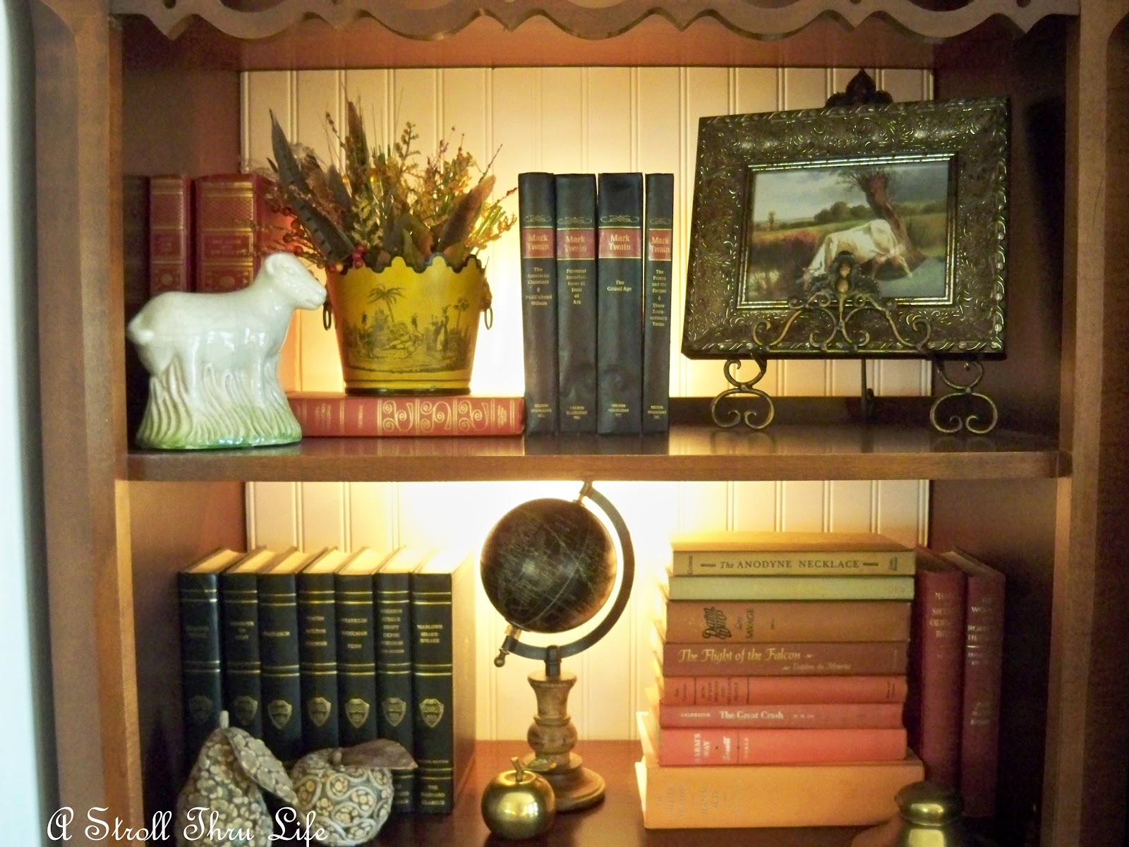 You can also use these in a much less formal display. One of my bookcases has room for a couple of pics and I have a cow picture displayed on the medium one in this vignette.