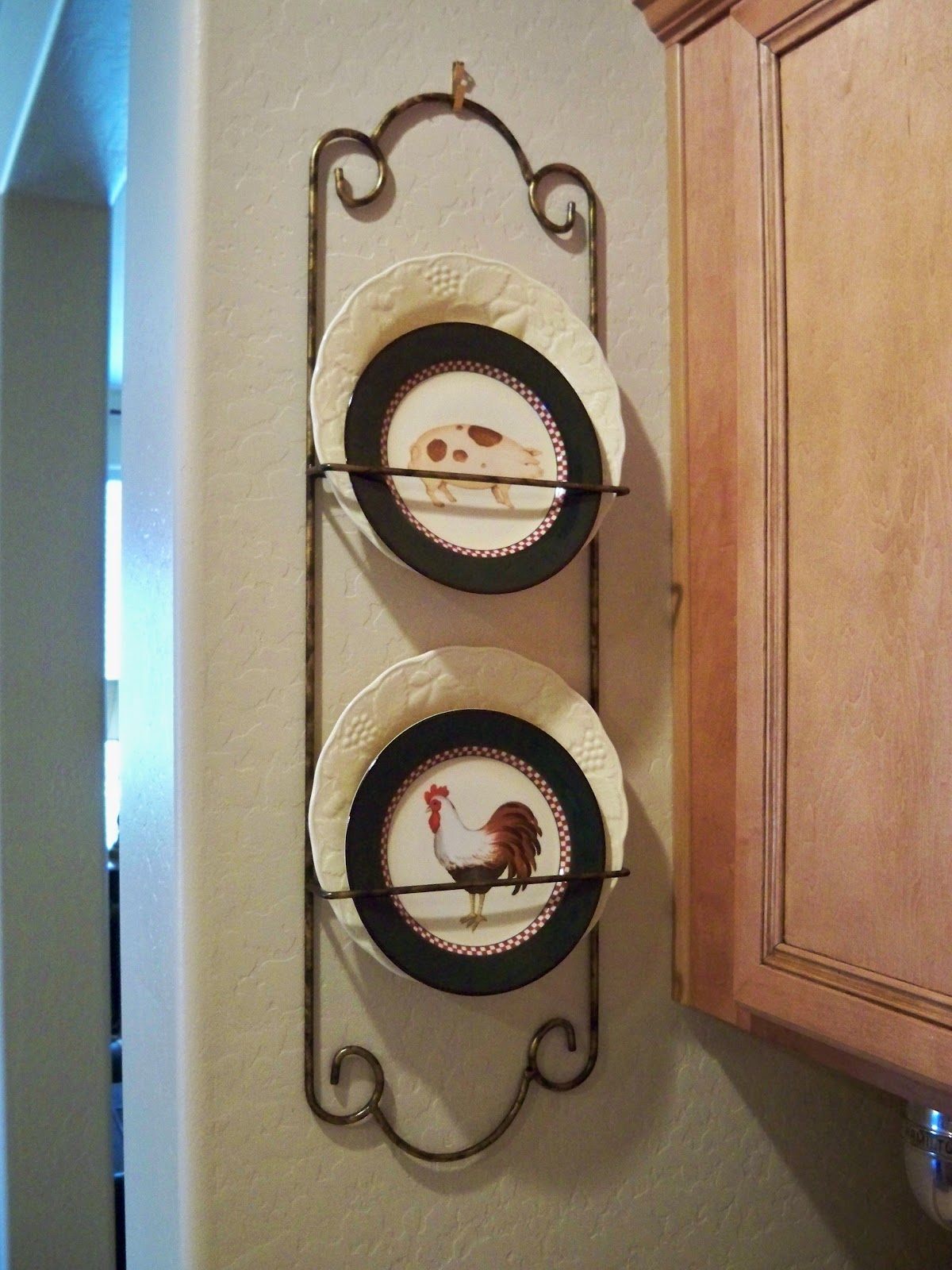 The plate rack works perfectly. I placed two plates in each slot. Love those little pig and rooster plates, they add so much wonderful color.
