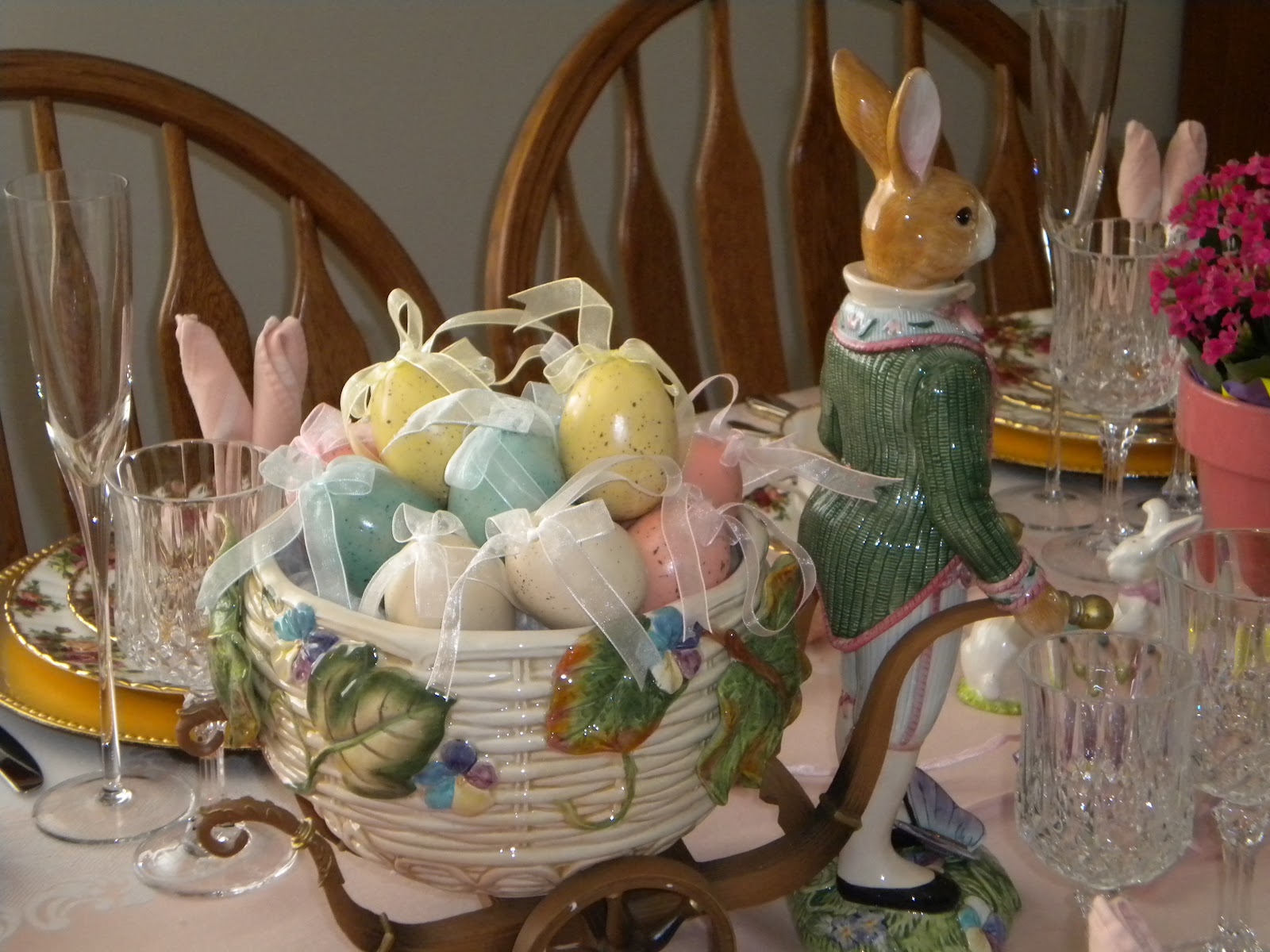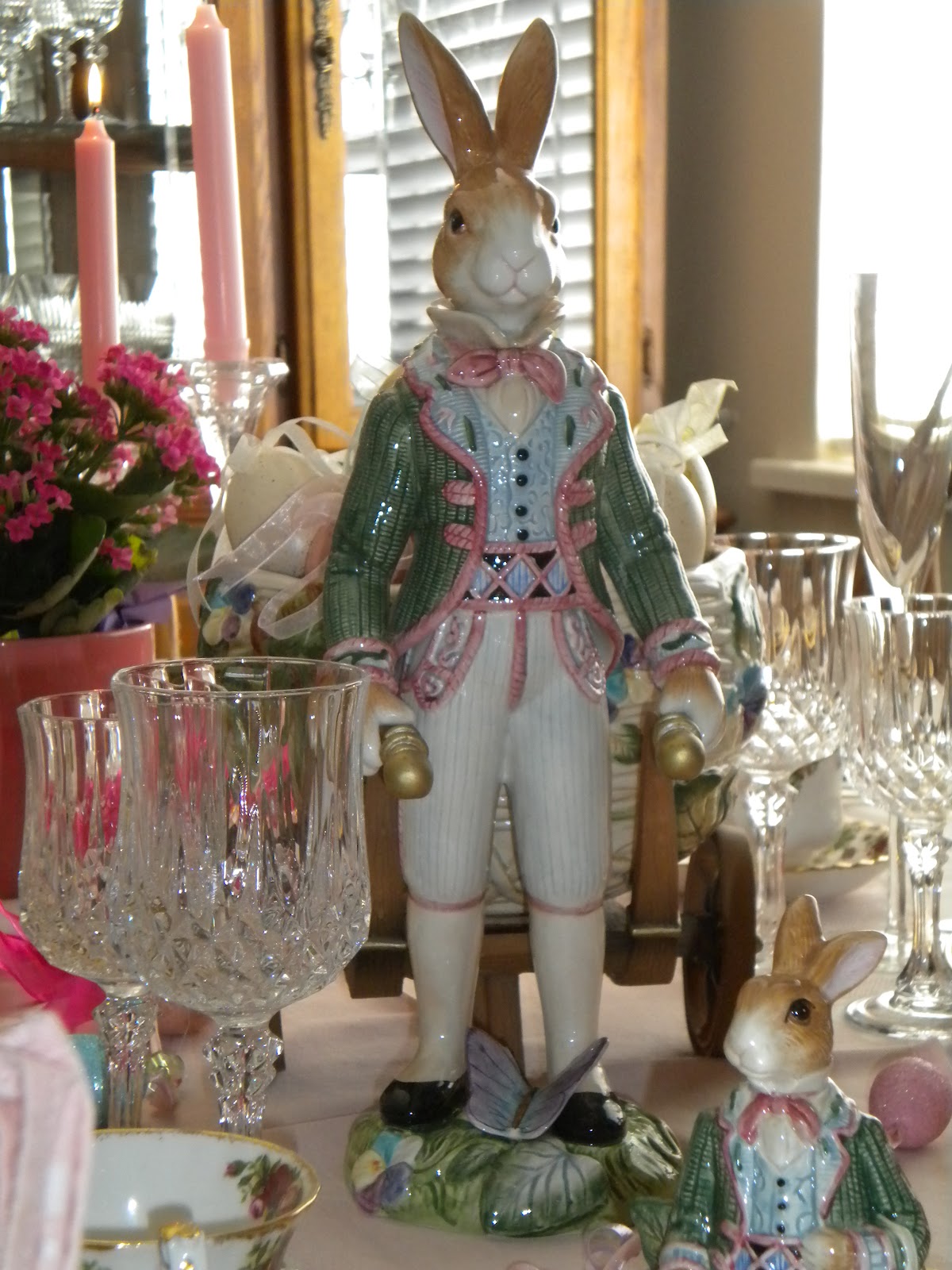 Mulberries and Lace is a brand new blog by a lovely lady named Marilyn who lives in So. Calif. and she loves to entertain. You can definitely tell that by looking at this fabulous table she has set for Easter. Her china, crystal and bunnies are incredible. You definitely want to go say hello and welcome her to blogland.