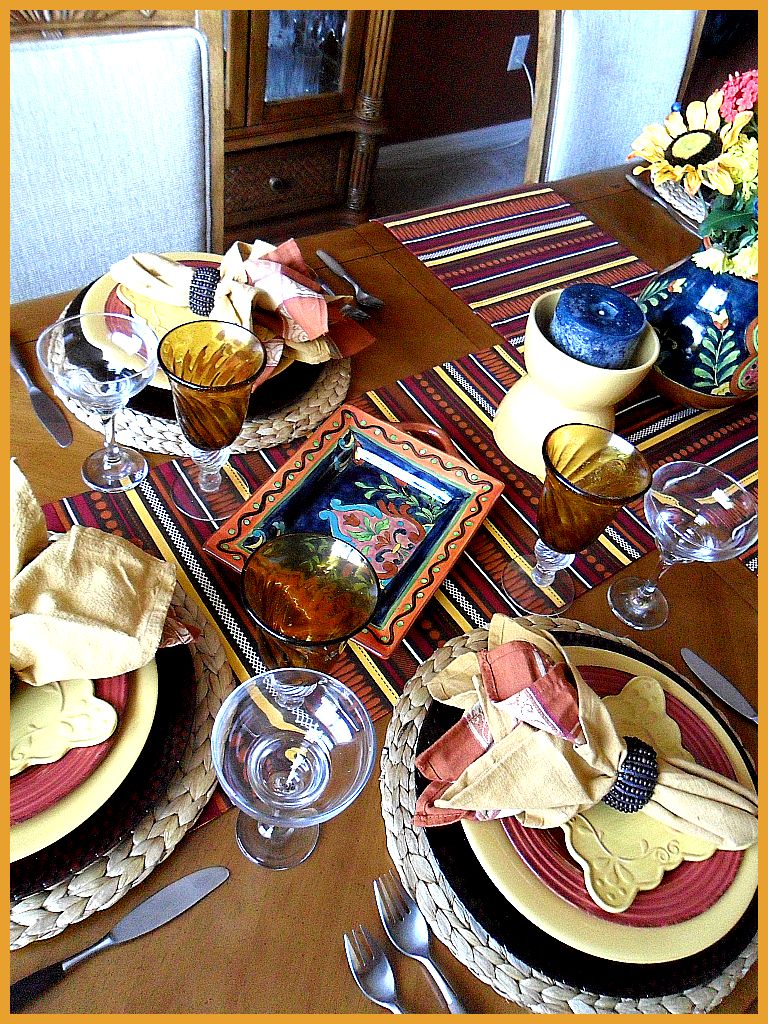 Did you celebrate Cinco De Mayo?  Robin Flies South had such a beautiful tablescape.  I loved her colors and placesettings.