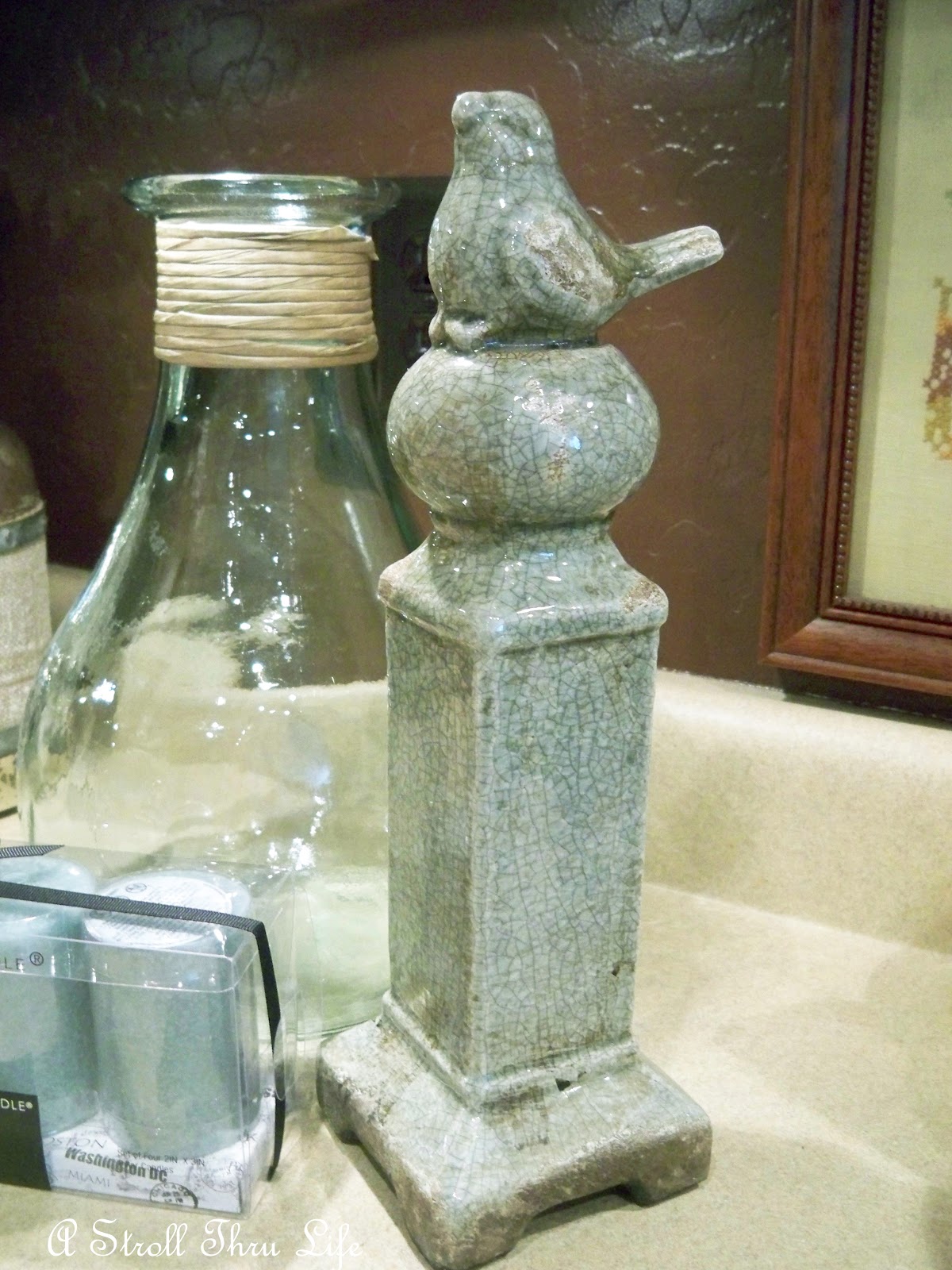 Love this pretty aqua bird finial too.