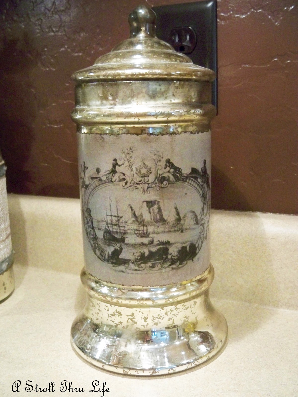 I loved the design on the beautiful mercury canister.  The background was hard to photograph to show the color,but it is a beautiful shade of the soft aqua that I am using.