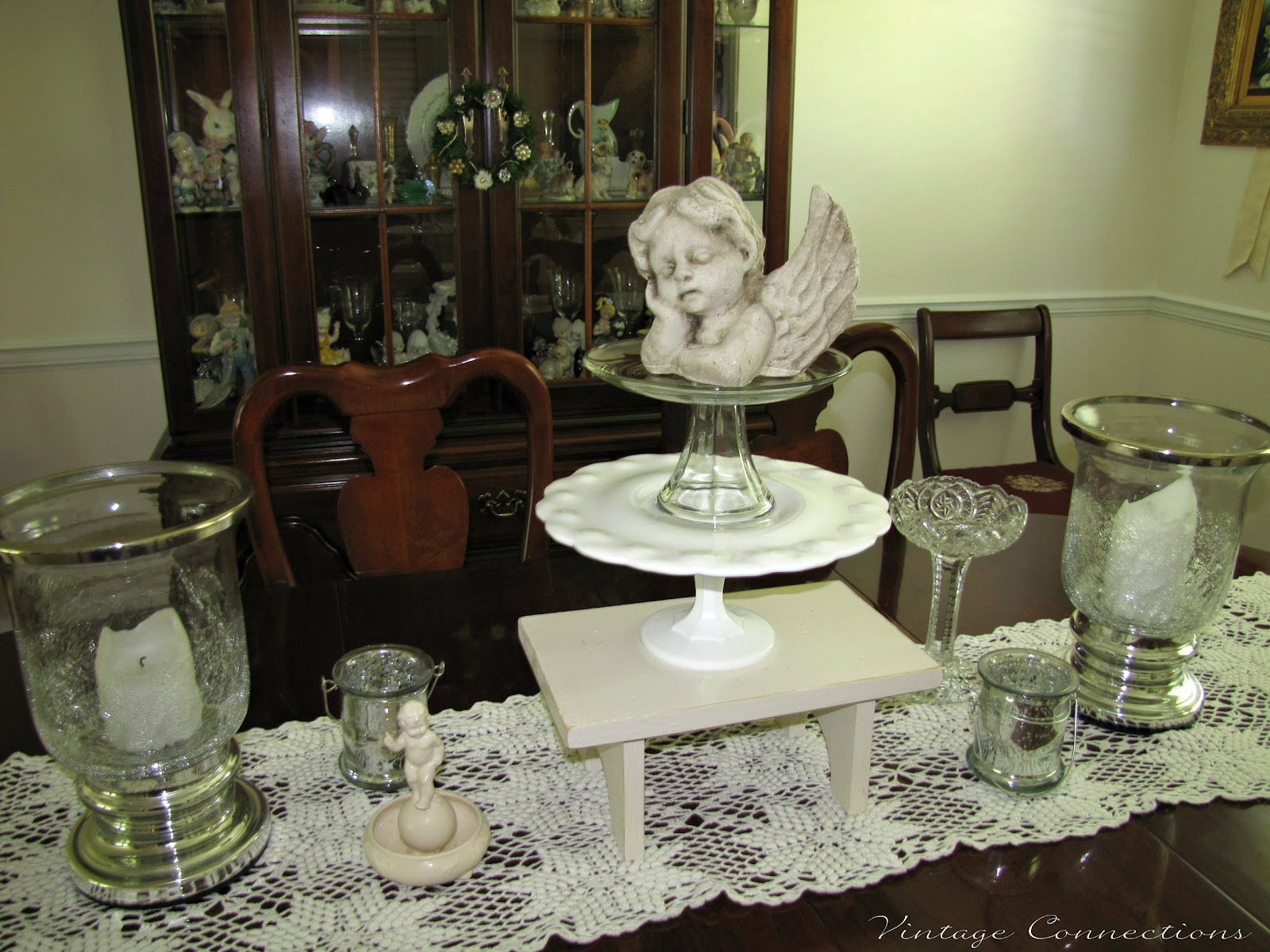 Vintage Connections took a few things with no home and created such a fun and beautiful table centerpiece.   How fun and creative is this. Love it.