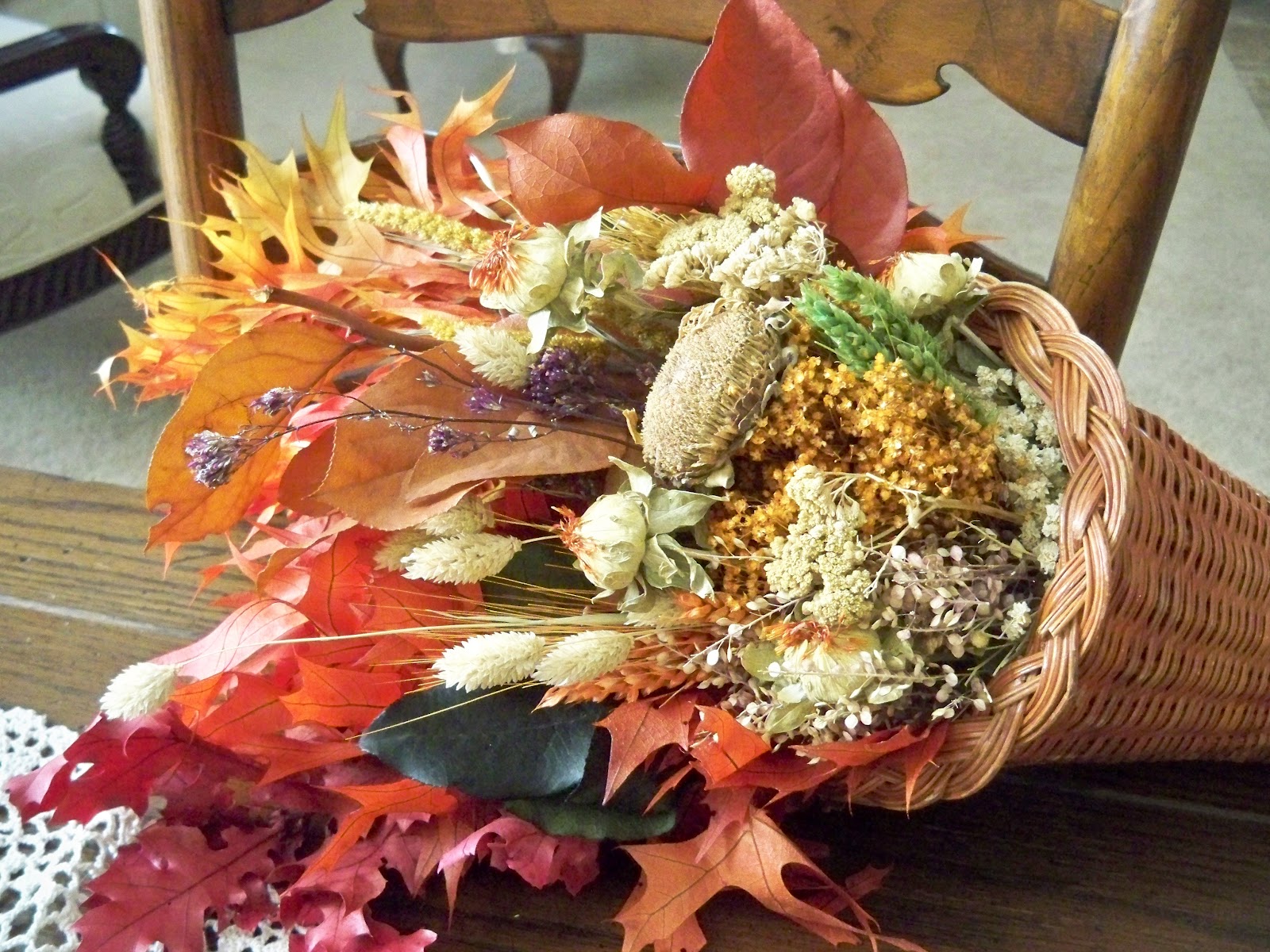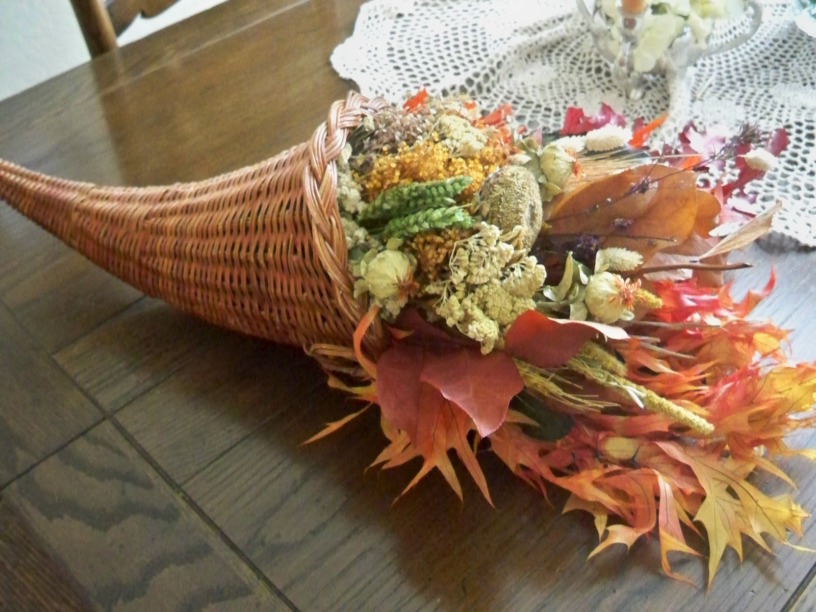 After that we were hungry, so we went to Paradise Bakery for lunch.  As two friends do, we ate and talked up a storm.  So fun.  Back at my house and she headed home and I decided to play with my cornucopia.