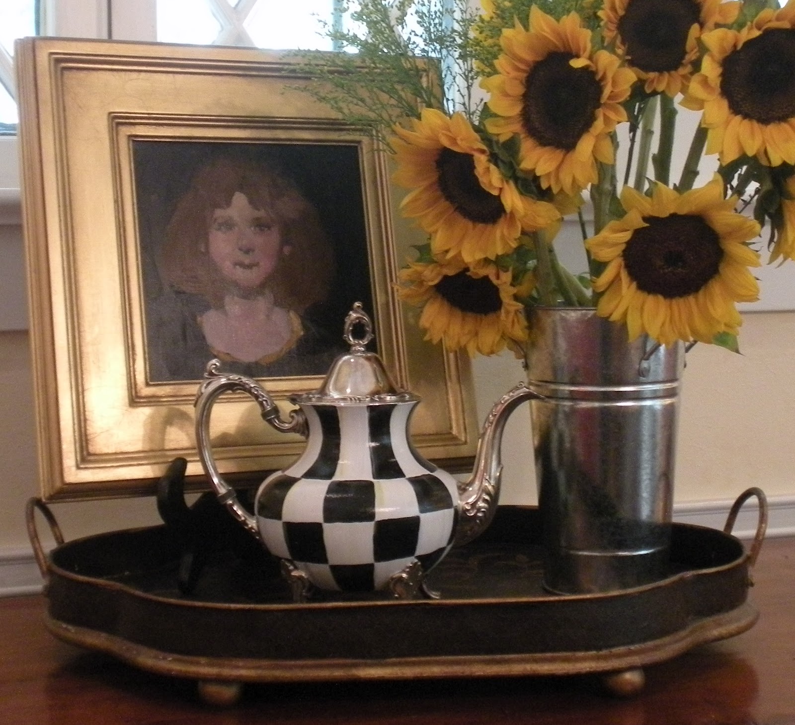 I just want to take a picture of this and frame it. Isn’t this the most perfect Still-Life picture you have ever seen. Also, can you imagine, the checks are painted on that silver teapot. You have to go see this at