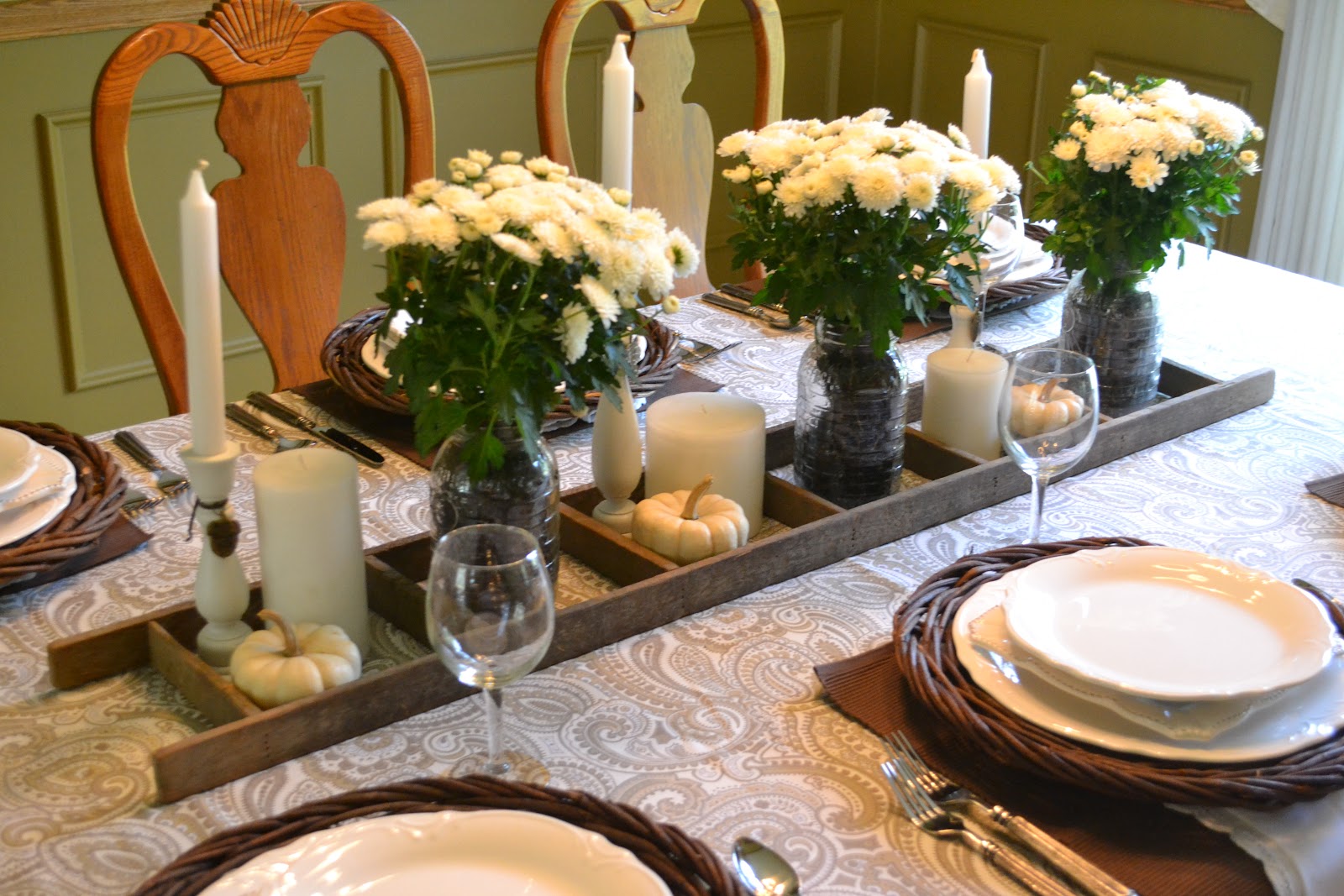 Corner of Plaid and Paisley used a ladder as the centerpice for her tablescape.  Isn’t this the cutest thing you have ever seen.  The jars of mums are so pretty too.