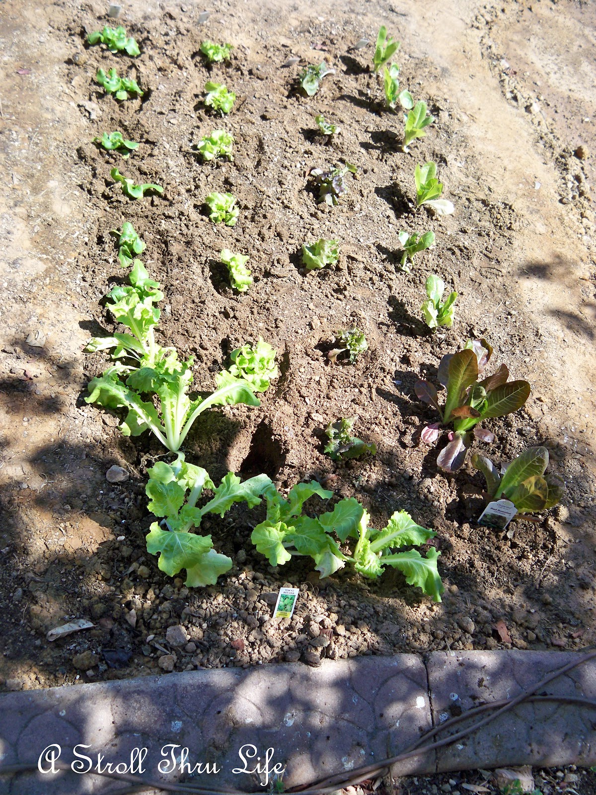 Four types of lettuce all planted. The other side he will plant beans against the fence, cauliflower, brussel sprouts, broccoli and eggplant will go in the beds when he gets them tilled.