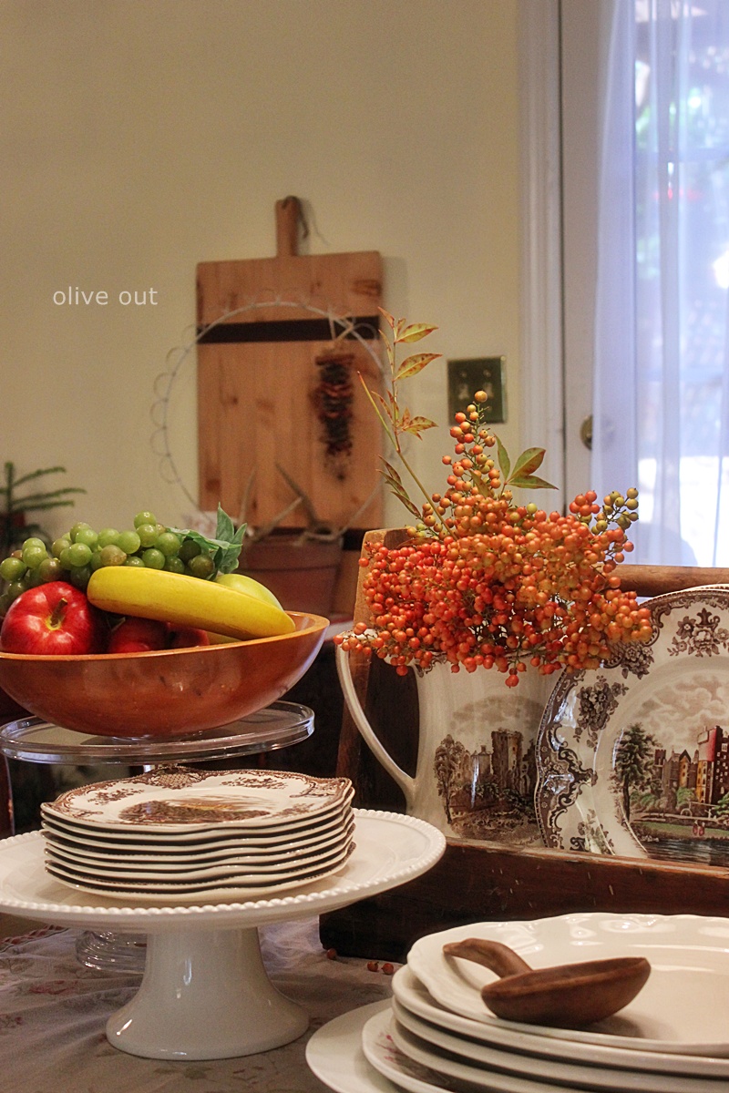 Olive Out used a toolbox to hold some of her dishes in this setting. I LOVE her brown transferware.