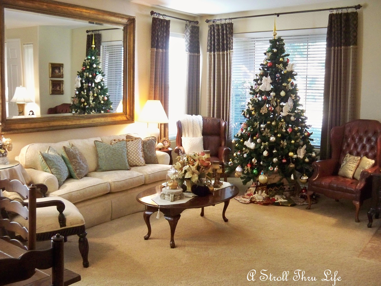 This year I went with a really simple tree. I didn’t even use half of the ornaments, but I like the simple look we have. Here are a few pics showing the living and dining room decor.