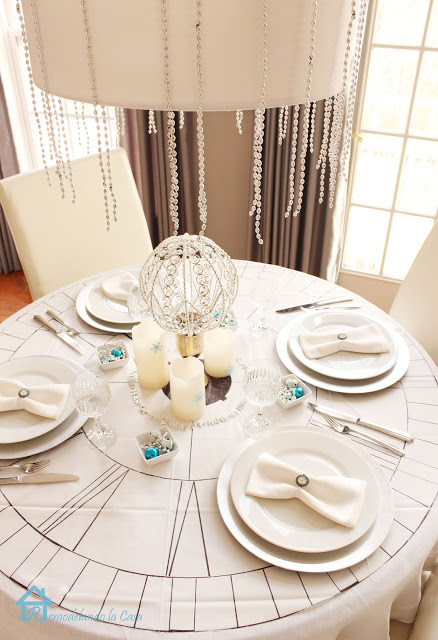 Remodelando la Casa designed her table around this fabulous tablecloth that she made. Amazing.