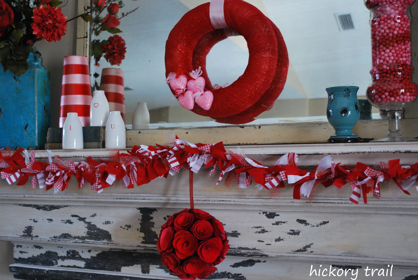 Hickory Trail created such a really cute vignette on her mantel. I love the added touch of the turquoise, and the rag garland is gorgeous.