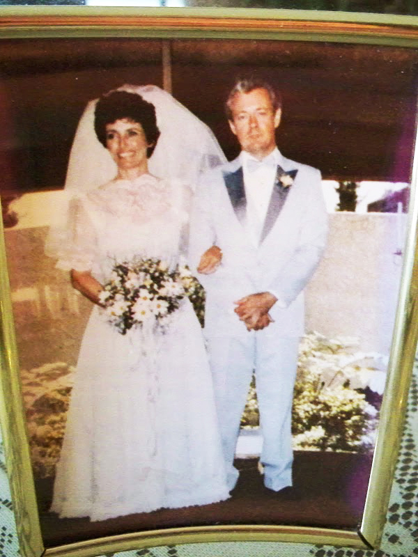 We looked a whole lot younger then. Can you believe that he helped me make this dress by cutting out lace flowers for weeks. Now that is really a keeper.