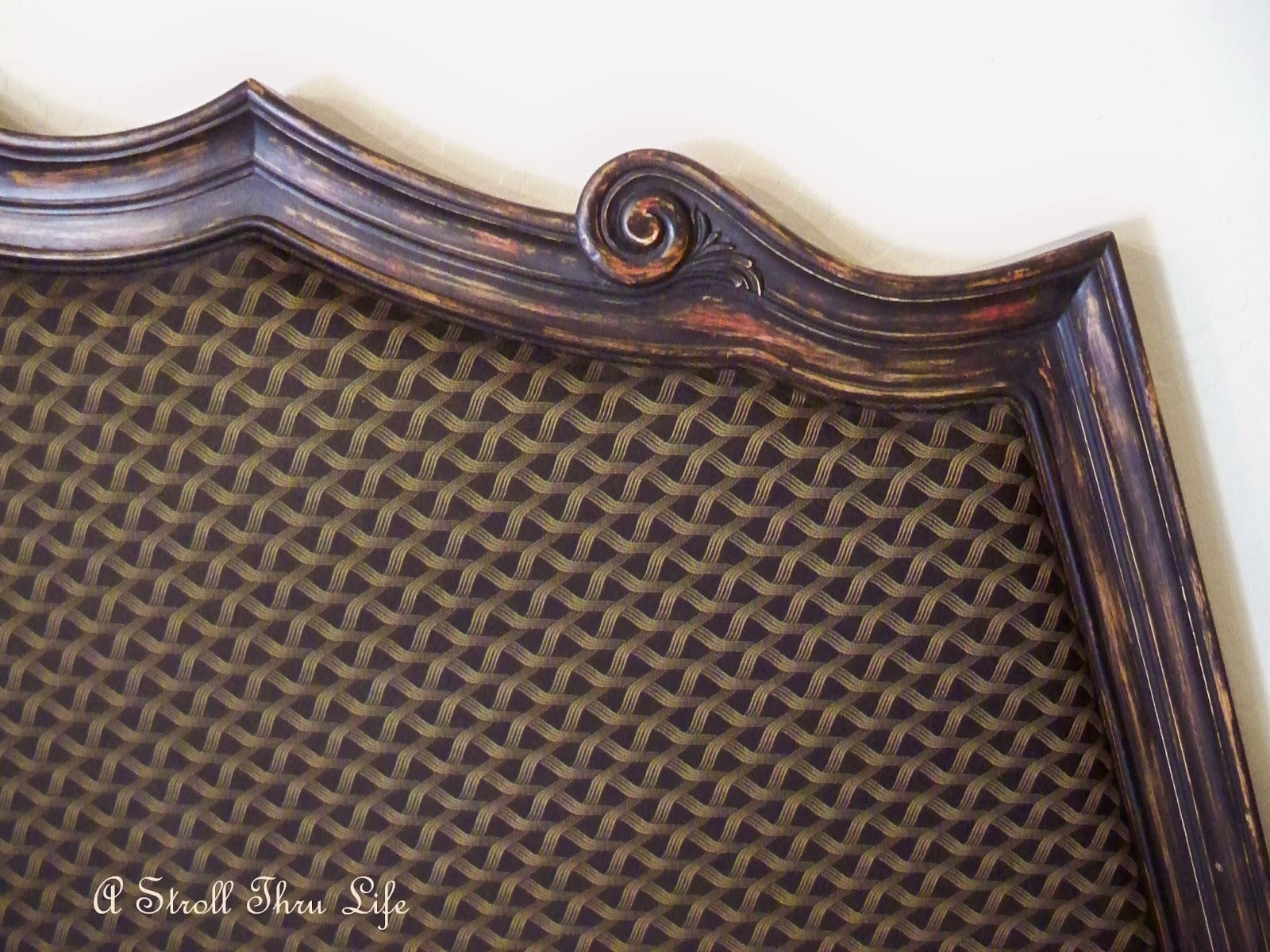 The headboard had great lines and wonderful fabric, but the orangey colored wood just really had to go. At a price of $75 for a king size, it had real potential and I knew it would be such a focal point all redone.