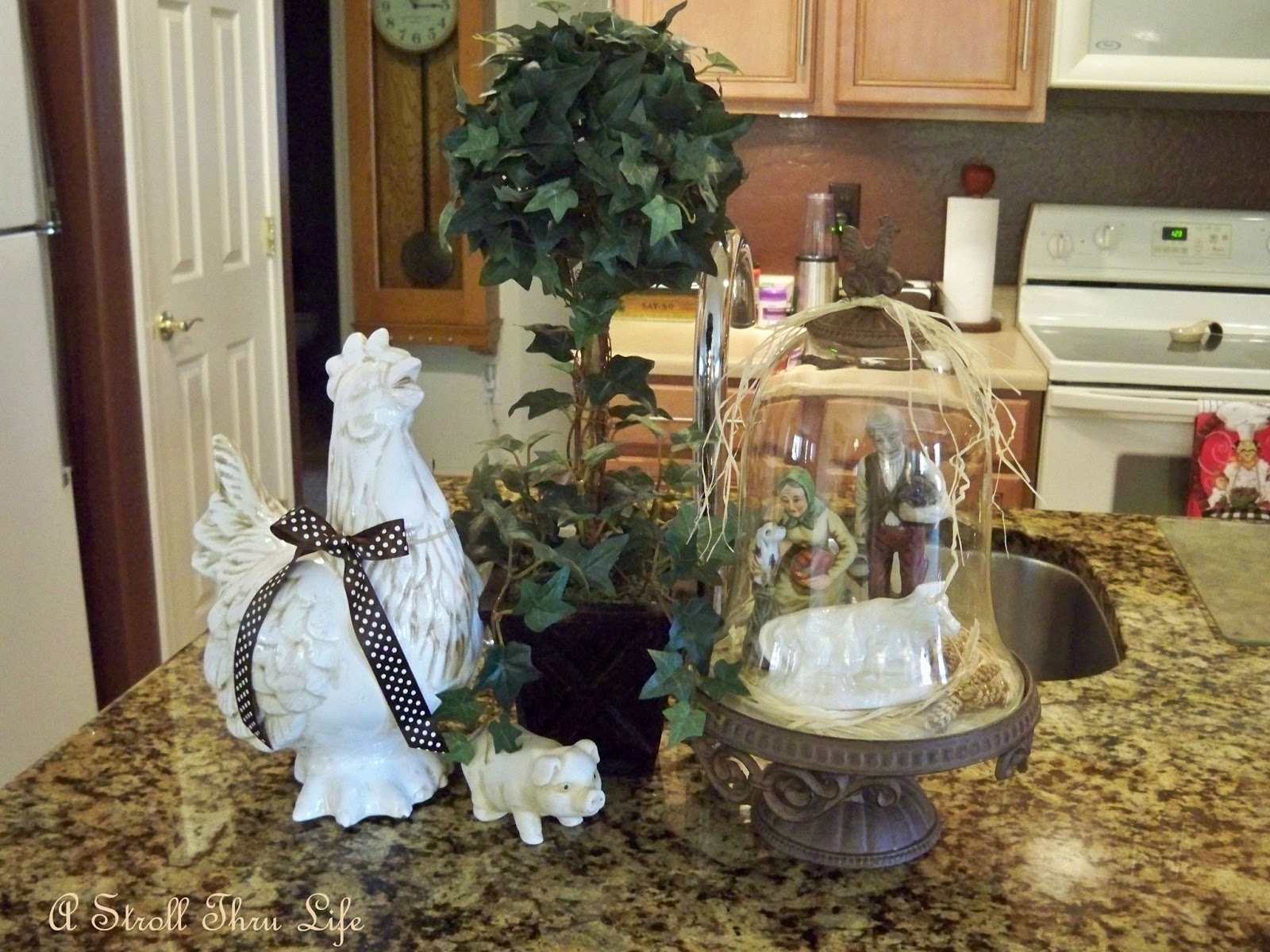 Then the fun began with a few new vignettes.  My new little pig from a recent shopping trip found a home here.  Click here to see my post about my visit to Garden Ridge.