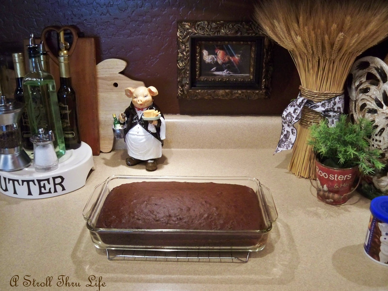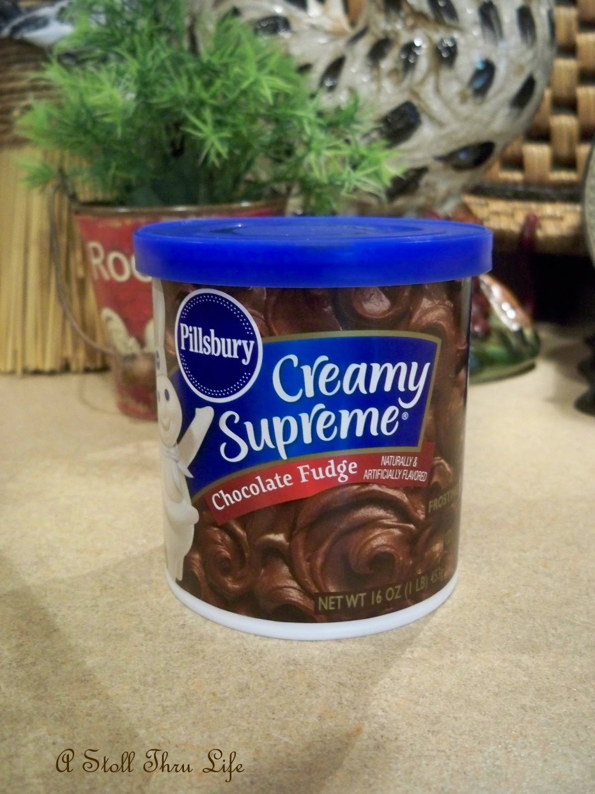 This is a cheat cake all the way around. Put your fudge frosting in the micro for approx 20 to 30 seconds, just until you can stir it really easily.