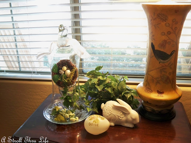 I don’t do a lot of Easter decorating, but I did think that maybe a small vignette was in order for the living room.