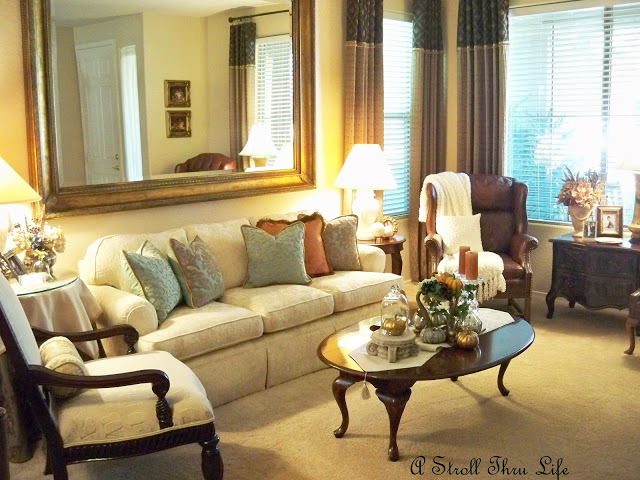 My style is basically traditional with just a touch of country, French, second hand redos and goodwill/thrift store finds. I am forever changing things and a neutral background allows me to get a totally different look by simply swapping out pillows and accessories.  You can see some of my many changes here.