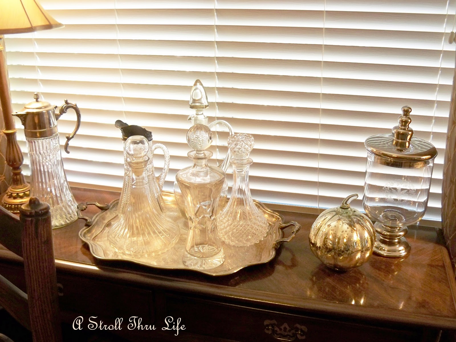 You all know that I love anything silver and if it has some beautiful etched glass with it, then I just can’t seem to pass it up.