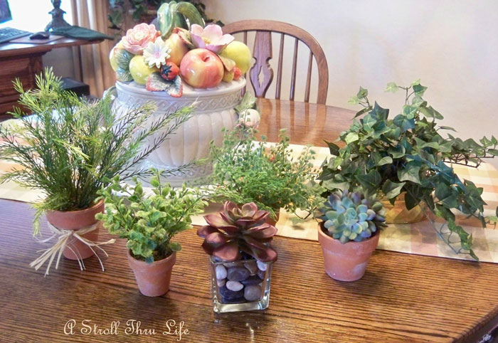 Adding some small pots to a tray creates a great table centerpiece.