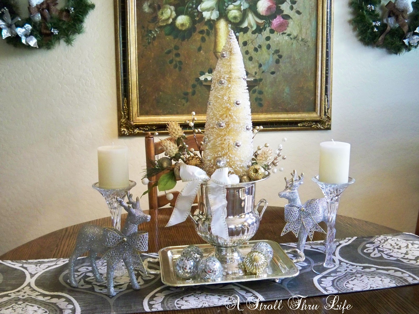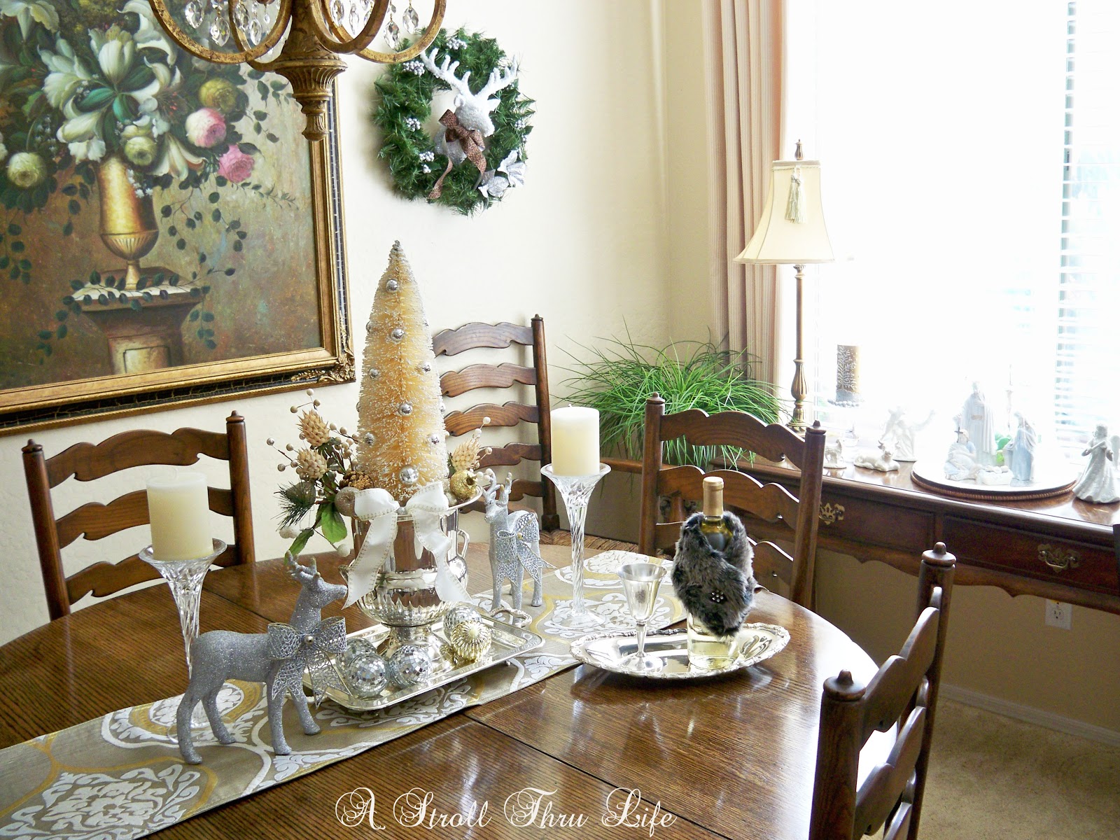 The dining table got a little sparkle too with a silver and gold runner.