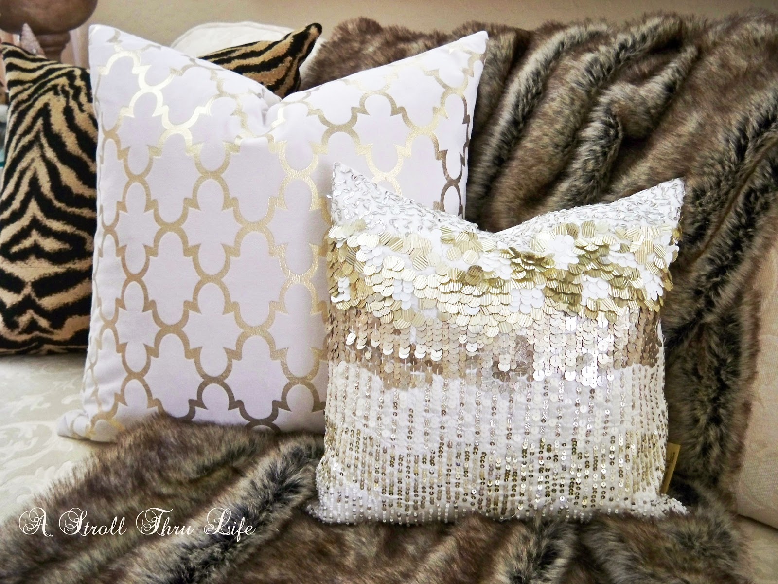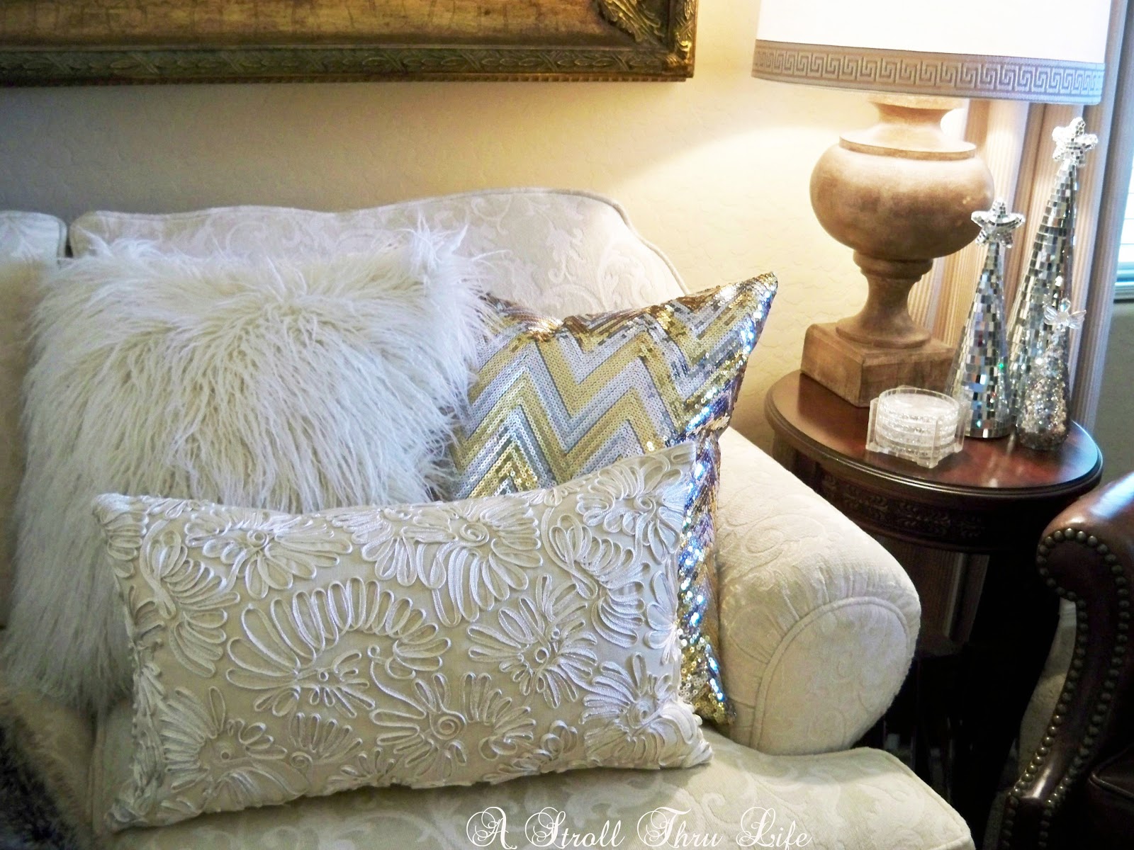 Anything with sparkle or glitter caught my eye and there was plenty of                    sparkle on all of the pillows.  Homegoods has a fabulous selection of glitzy pillows.