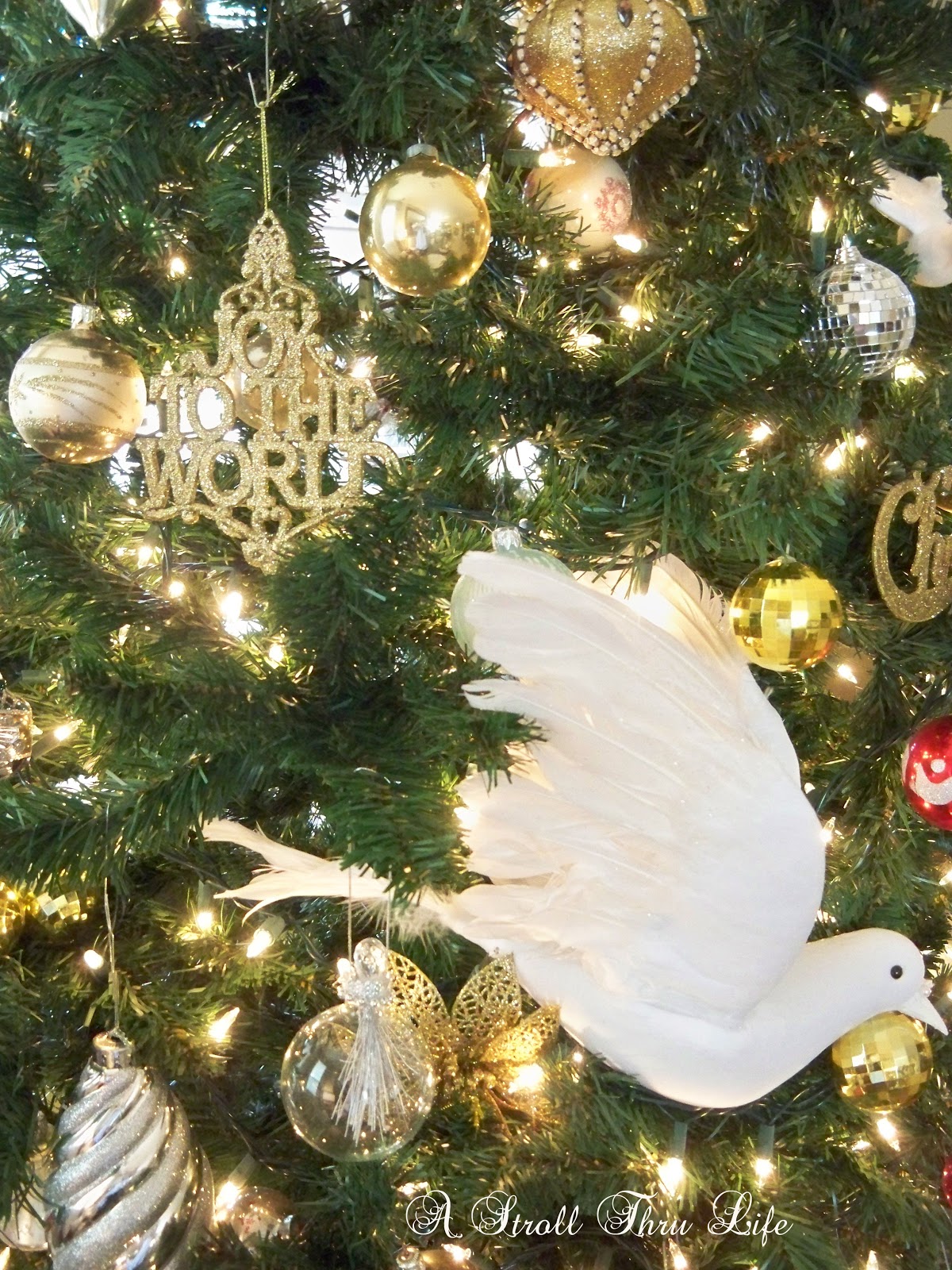 Our tree got a few new mirror ornaments this year, but is always decorated with ornaments collected over a lifetime.  The doves are one of my favorites.