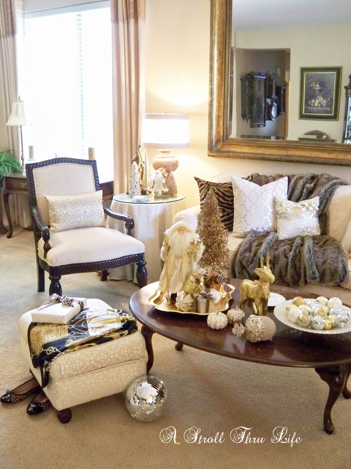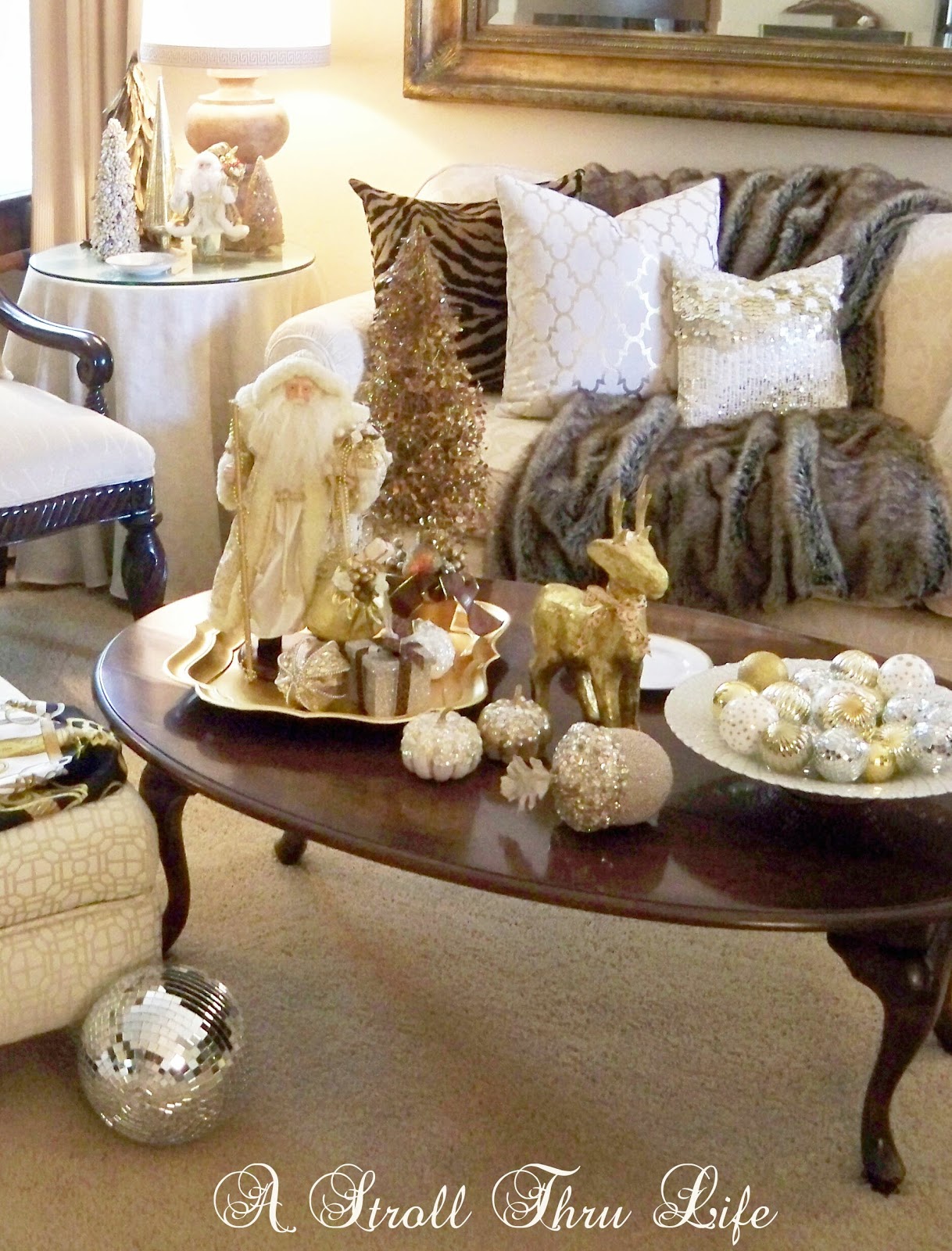 This year I decided to keep the living/dining area neutral with gold/silver/glitz and shimmer.