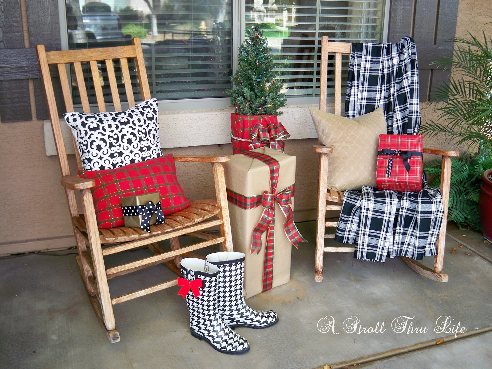 I added a few pillows and comfy throw to the porch, perfect place to curl up and enjoy a cup of coco.
