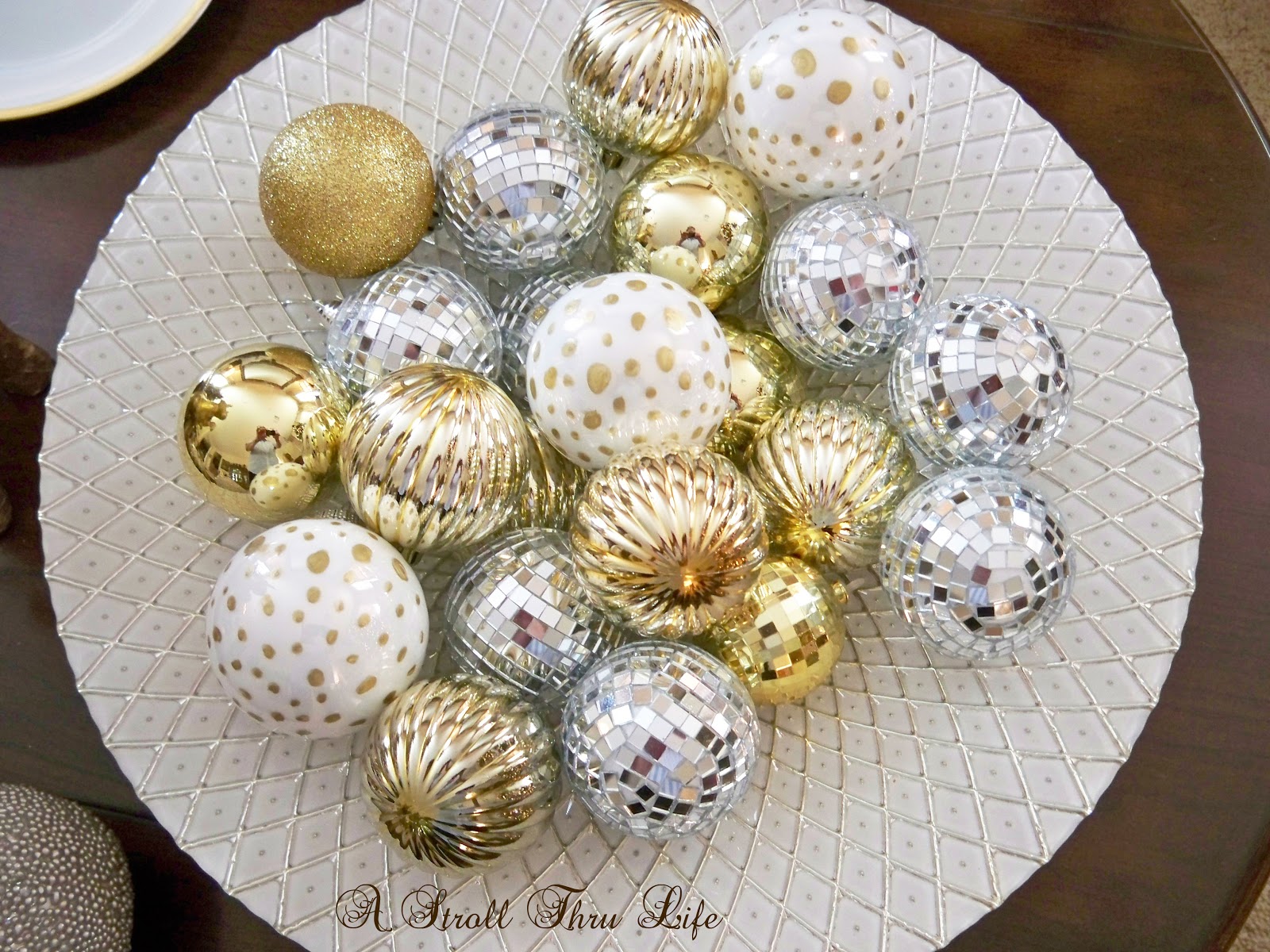 plus a pretty bowl filled with some diy ornaments.