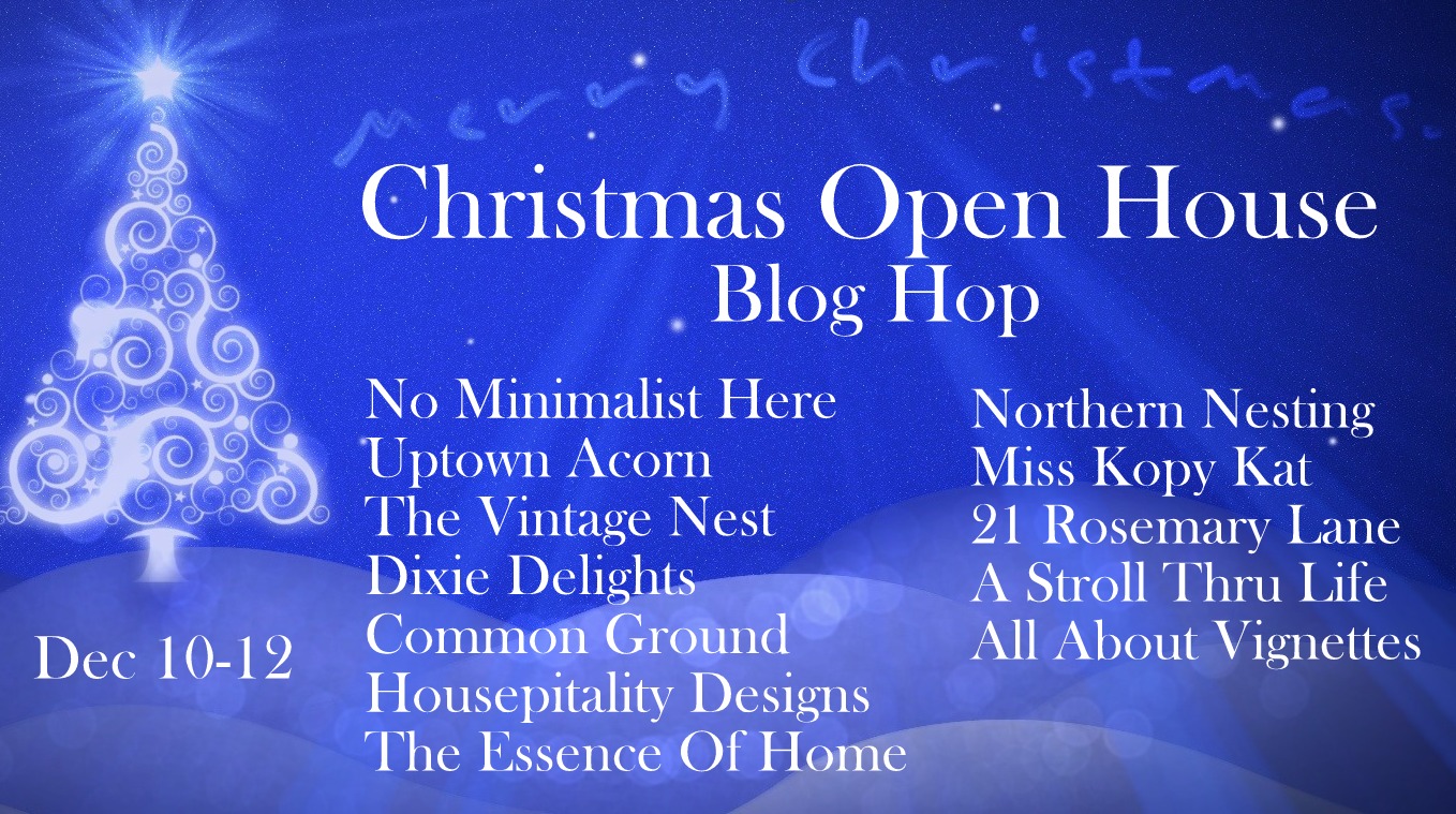 I am so thrilled to be joining the Christmas Open House hosted by Sherry @ No Minimalist Here.   If you just came by from 21 Rosemary Lane, welcome.  Her home is gorgeous and every detail of her Christmas decor is stunning.  I fell in love with her Guest Bedroom.  Tons of inspiration there.