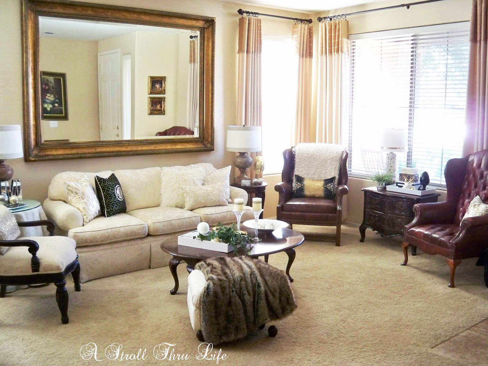 and the fur throw is resting on the ottoman. This gives the room an easy uncluttered look that I love after the Holidays.