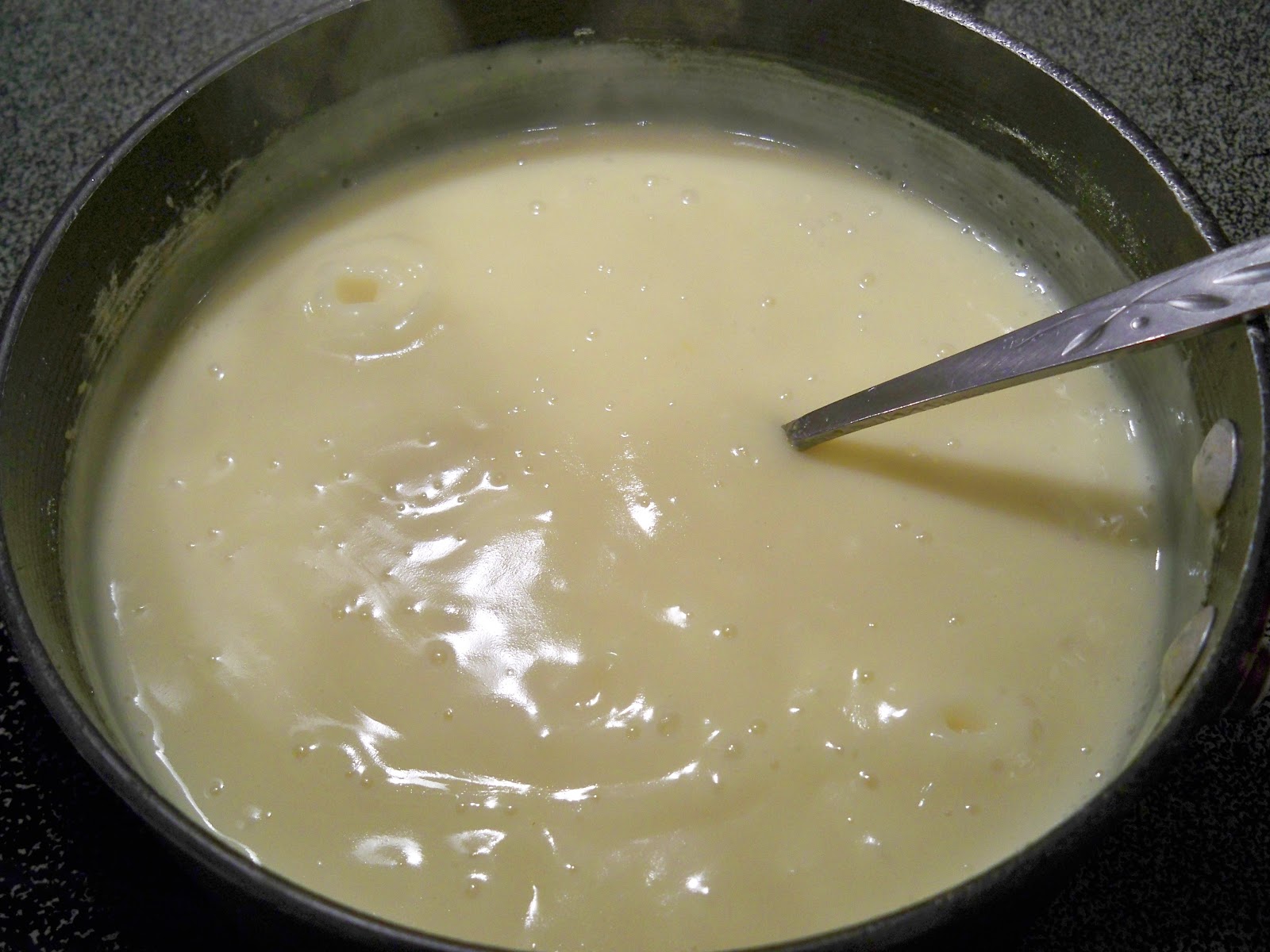 Cook on med. high heat, stirring constantly until it comes to a full boil and is thick.