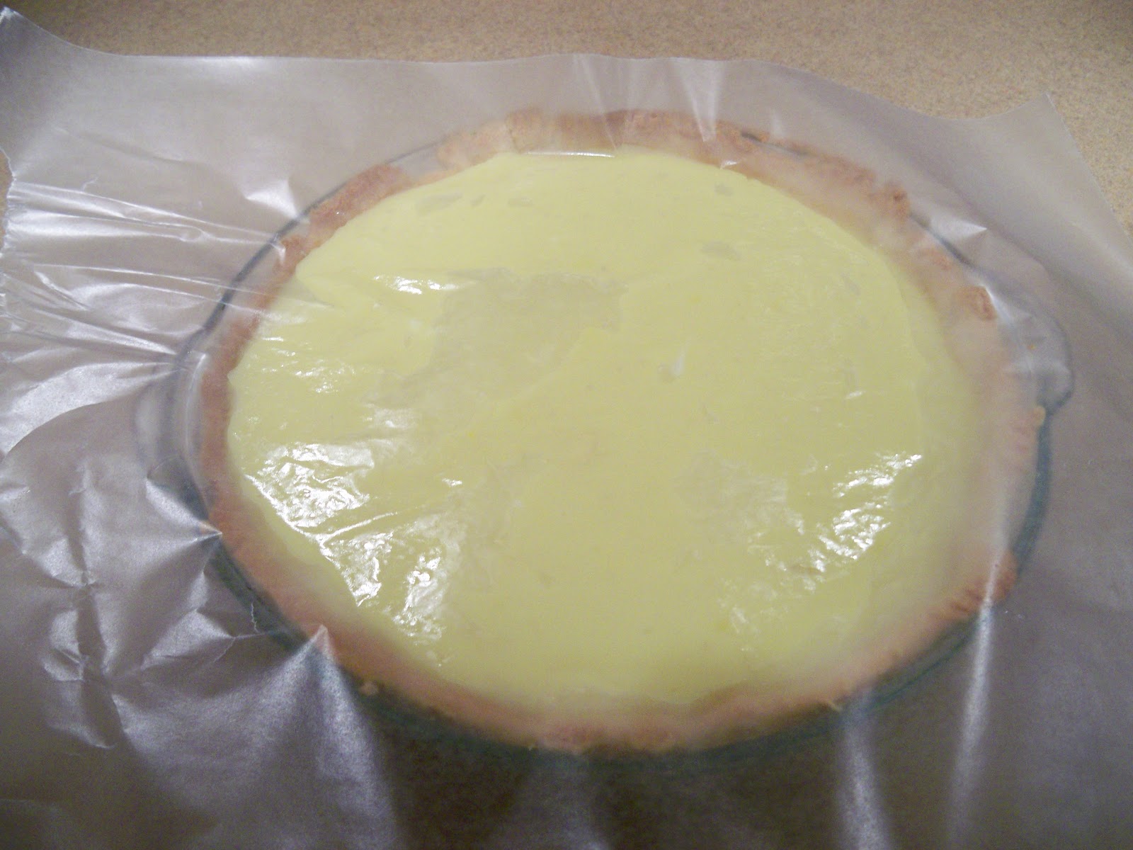 Cover at once with a sheet of wax paper making sure to have the paper touch the entire top of the cream mixture. –  This prevents a “thickened film” from forming on the top.  You need a soft creamy texture for the meringue to stick to.