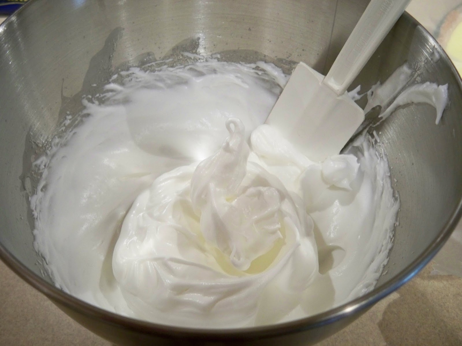 When they form soft stiff peaks – – – add 1/3 cup sugar.