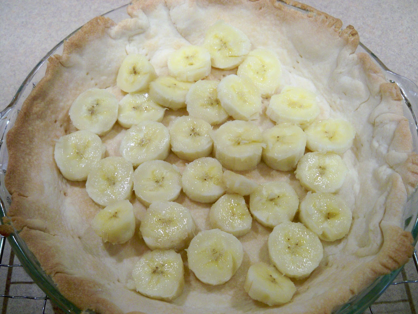 Slice two bananas and line the bottom of your pie crust.