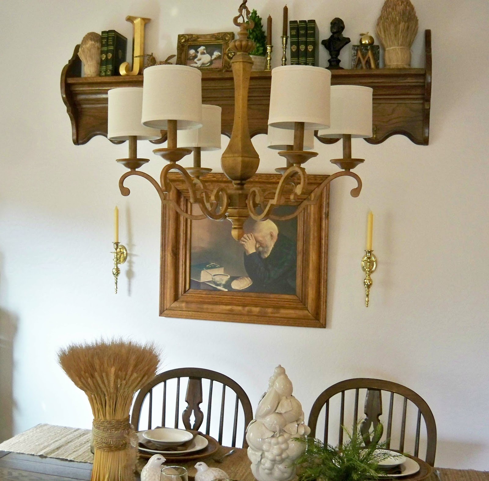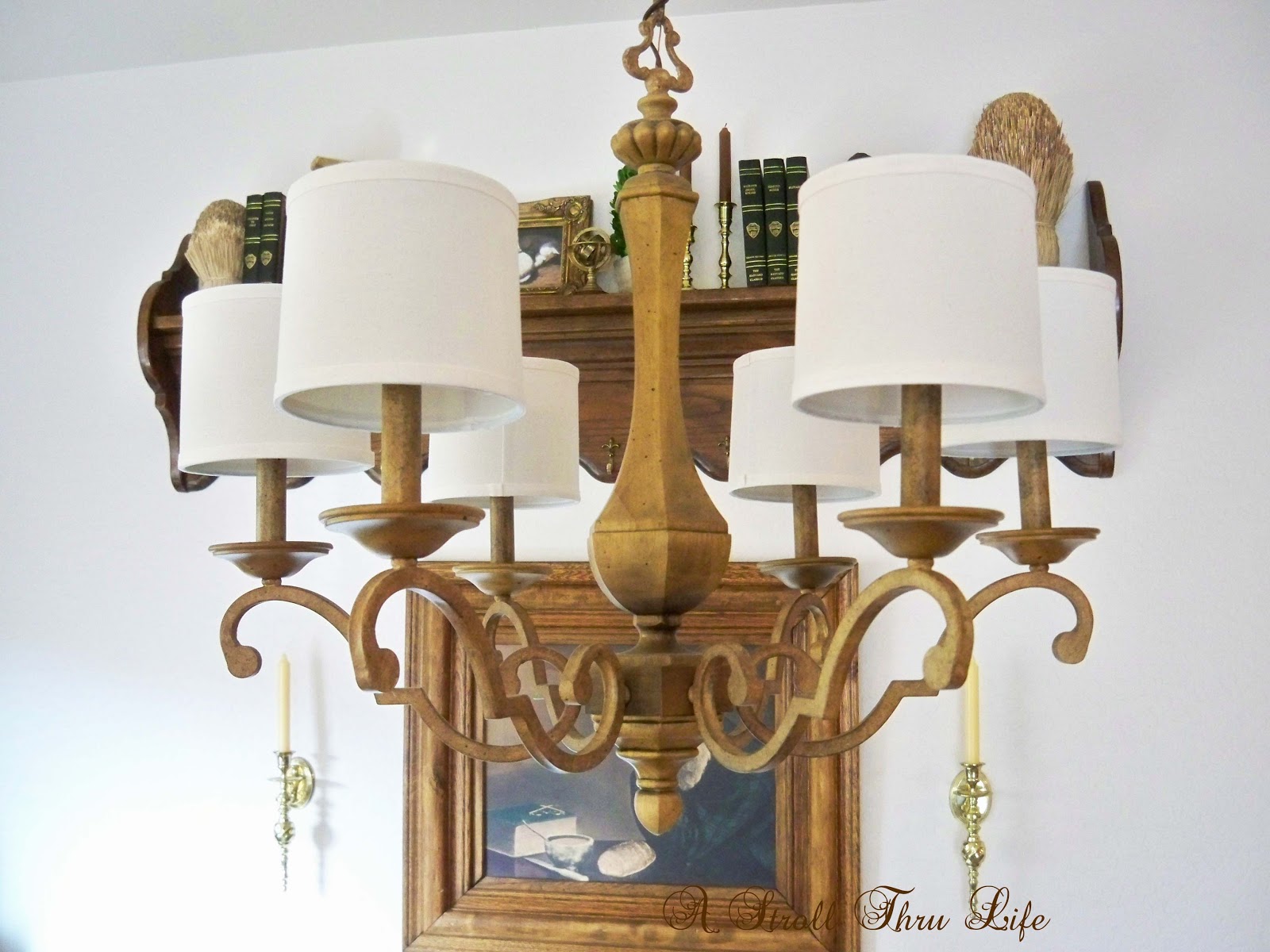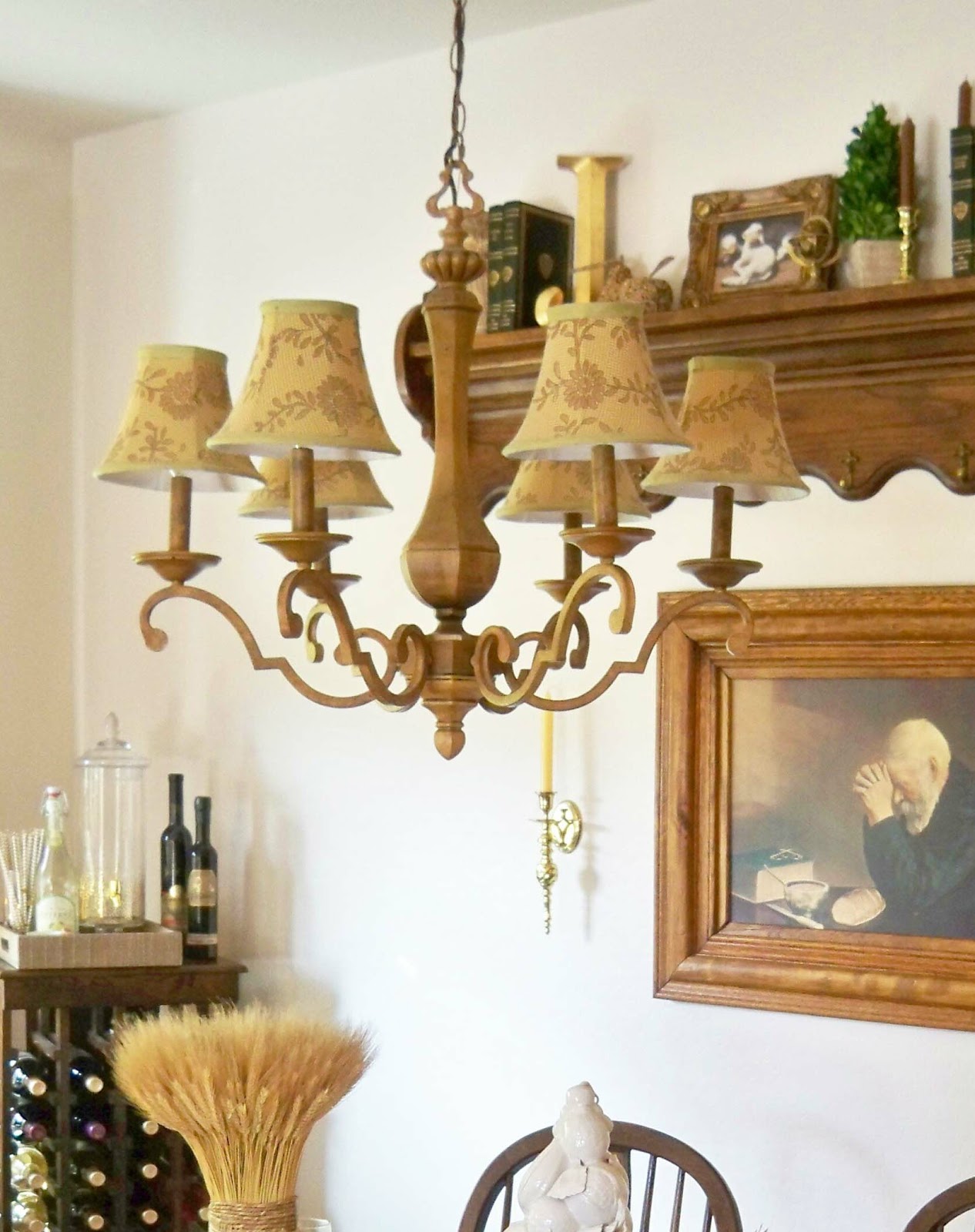 Seems like it takes forever sometimes to finish a project.  When I showed you my Breakfast area makeover , I still had chandy shades on order.  They finally came and I really like them.  They totally change the look of the chandy.
