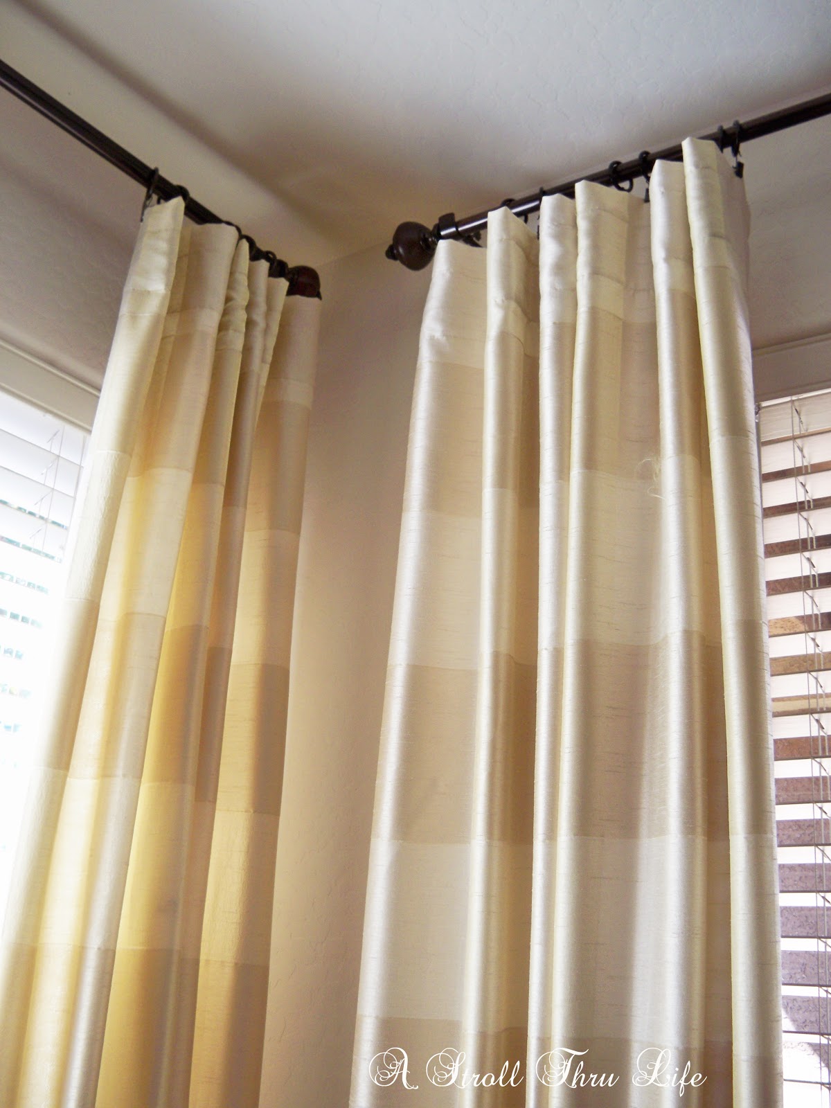 Drapes are coming along. On the right you can get a pretty good idea of the soft cream and tan color. (If you missed my post on how to Hang Drapes Professionally, you can see it here.)